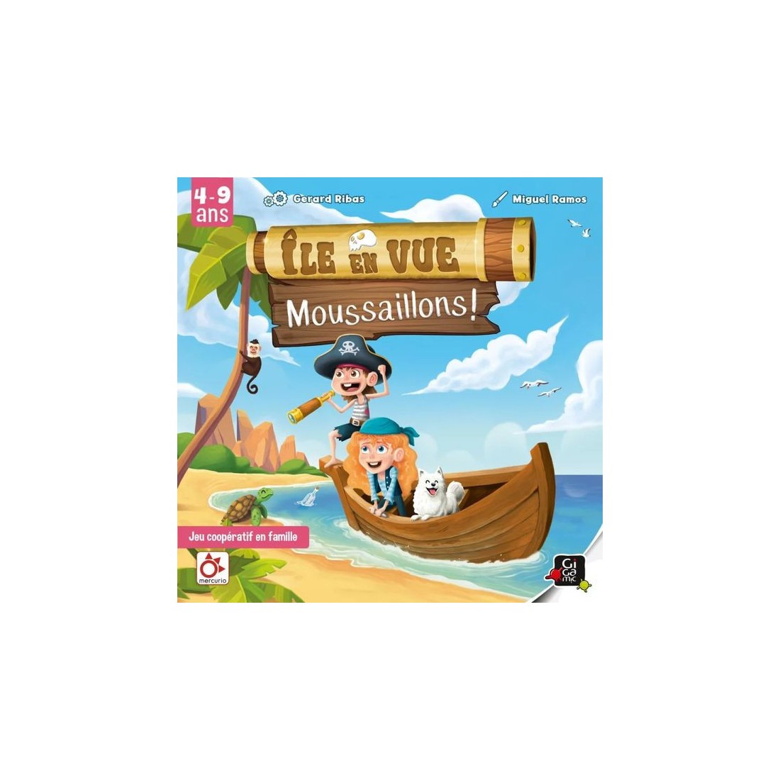 Île en Vue Moussaillons est un jeu de société enfant jouable de 1 à 6 joueurs, dès 4 ans pour des parties d'environ 15 minutes, édité par Gigamic.