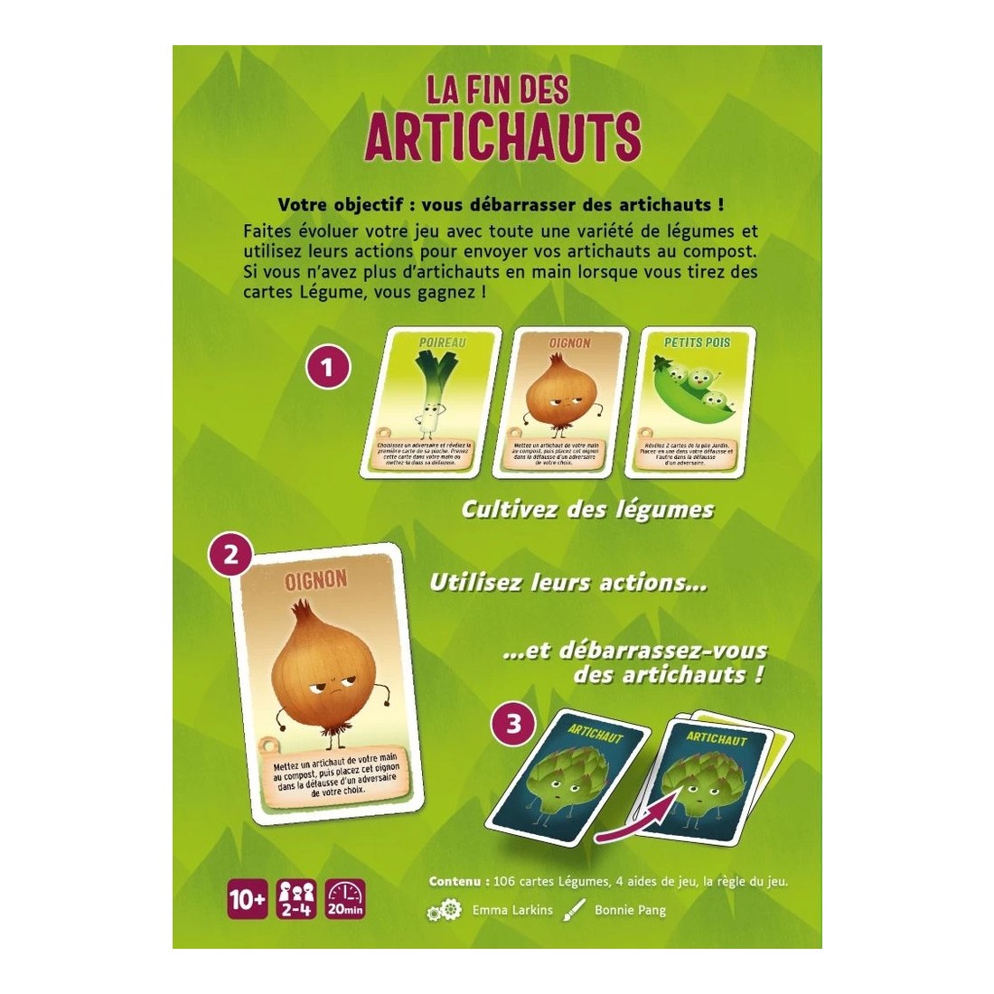 La partie s’arrête immédiatement lorsqu’il n’y a aucun artichaut dans la main d’un joueur à l’issue de sa phase 5 (piocher 5 nouvelles cartes). Ce joueur gagne la partie.