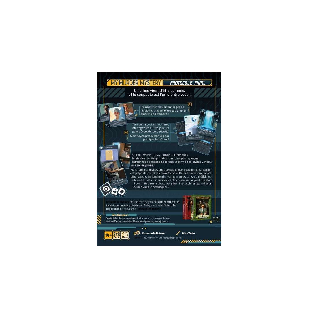 Silicon Valley, 2047. Vous êtes invités à une réception privée de la milliardaire Olivia Clubberfunk, fondatrice d’une des plus grandes entreprises du monde de la tech. La soirée est un succès, les Vip sont conviés à rester. Mais le lendemain matin, le corps d’Olivia est retrouvé sans vie et la villa sécurisée s’est verrouillée…