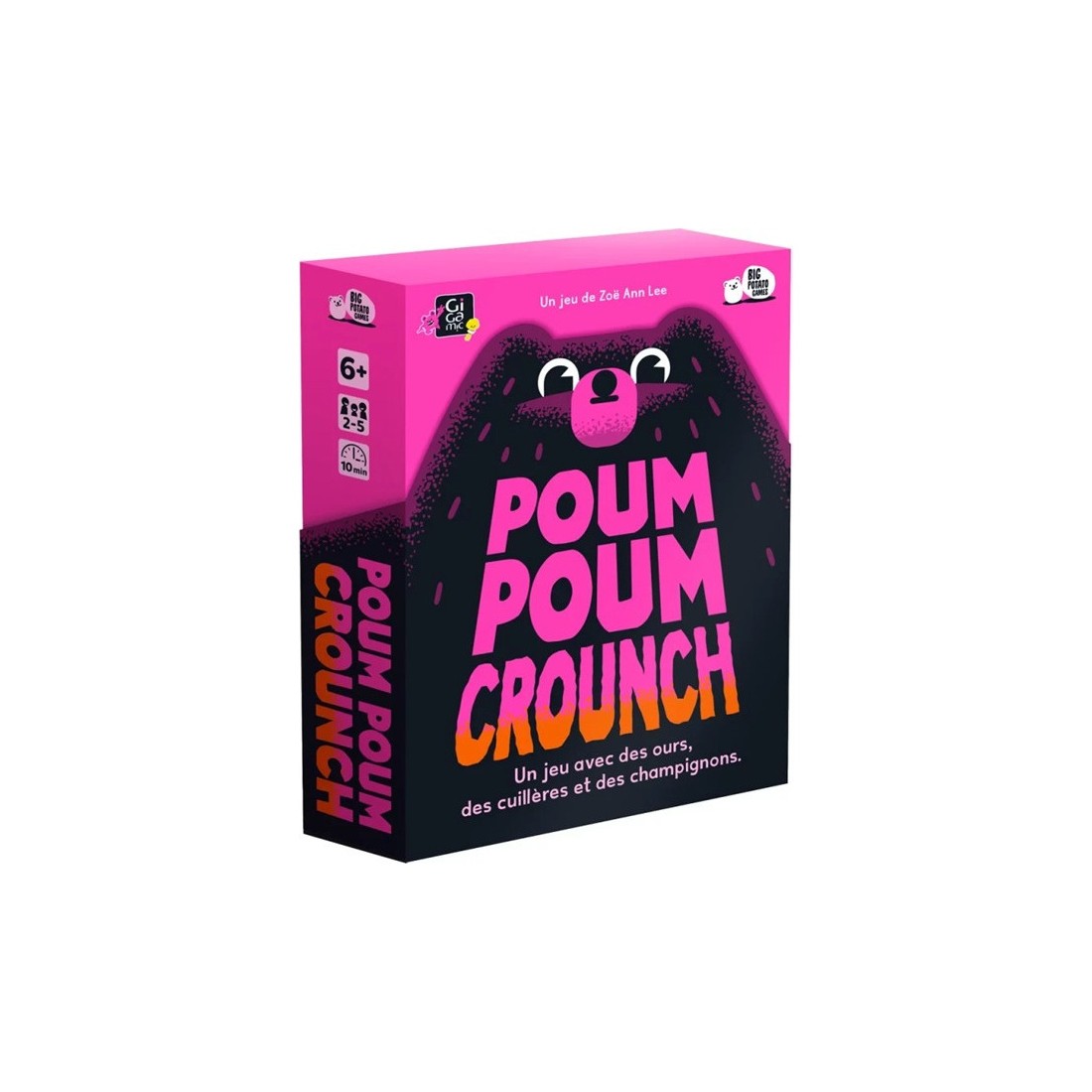 Au rythme du refrain "Poum Poum Crounch!", vous piochez des cartes avec des champignons que vous voulez dévorer. Mais si vous révélez un 3e ours, vous vous transformez, et foncez chercher la cuillère en bois pour tout rafler! Les autres tentent alors leur chance aux dés pour ne rien vous laisser... La personne (ou l'ours) qui a récupéré le plus de champignons au bout de 3 manches remporte la victoire!