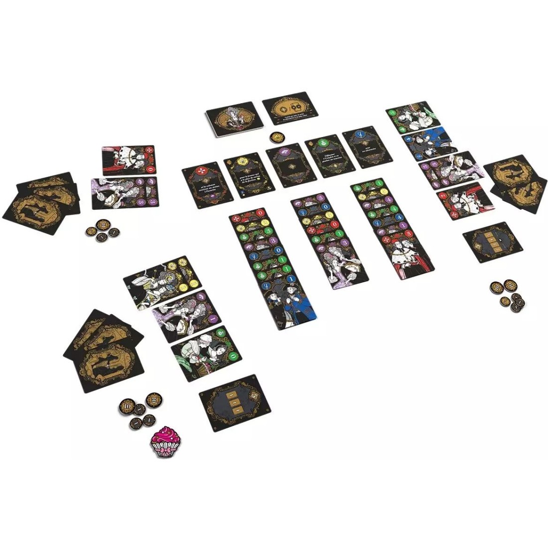 Vous pourrez récupérez de nouvelles cartes et déclenchez des effets, afin d'agrandir votre Cour et de valider vos cartes Complot ! À chaque partie les conditions et les objectifs seront différents, plusieurs centaines de milliers de combinaisons demanderont autant de stratégies différentes.