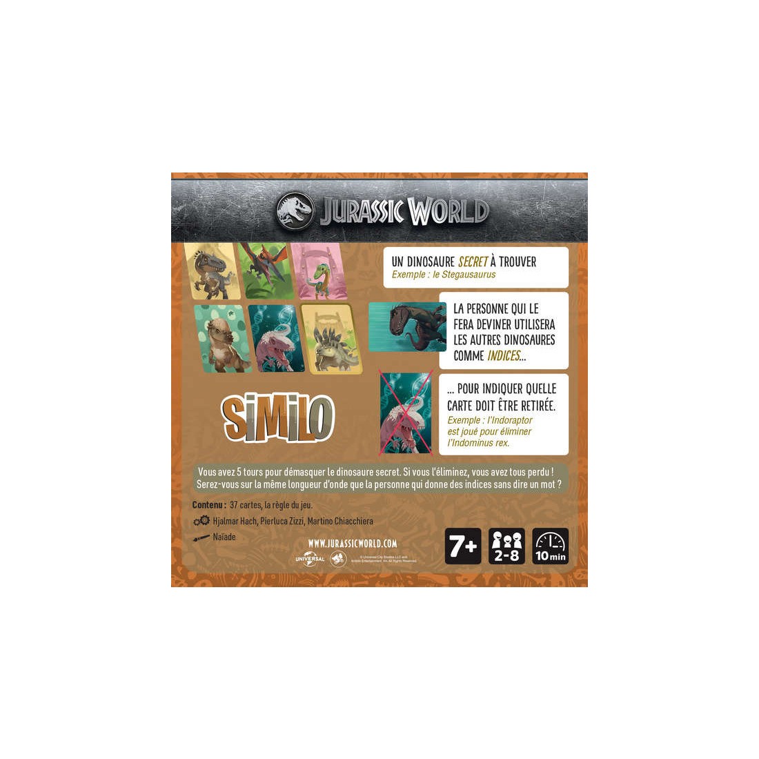 Similo : Jurassic World est un jeu de déduction coopératif où tous les joueurs travaillent ensemble pour identifier une carte secrète à l'aide d'une série d'indices ! Cet opus rempli de dinosaures du jeu de déduction Similo, acclamé par la critique, est accompagnée de plus de 30 cartes magnifiquement illustrées par Naïade, représentant le portrait et le nom des dinosaures de l'univers de Jurassic World.