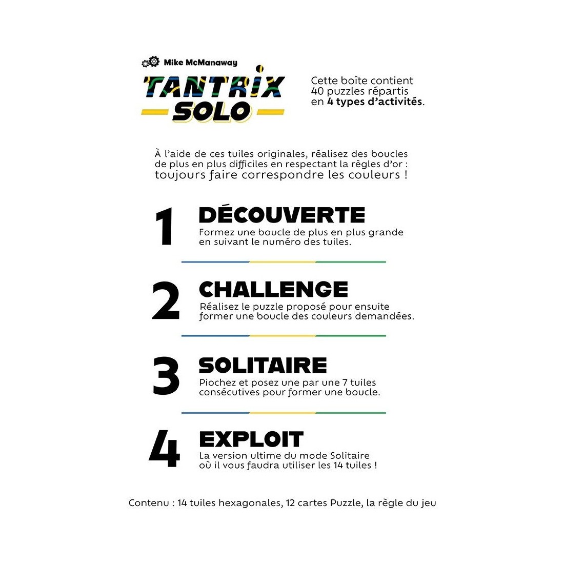 Cette boîte contient 40 puzzles répartis en 4 types d’activités. À l’aide de ces tuiles originales, réalisez des boucles de plus en plus difficiles en respectant la règles d’or : toujours faire correspondre les couleurs !