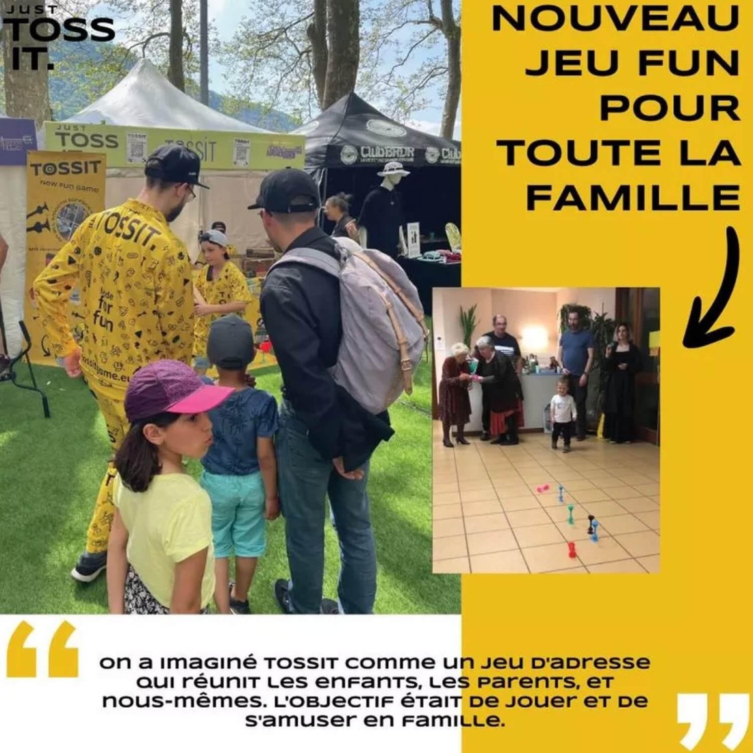 Tossit : le jeu de d'adresse tout terrain de la marque Gigamic ! Tossit est un jeu de précision mélangeant les fléchettes et la pétanque. Grâce aux ventouses situées à chaque bout des projectiles, Tossit peut se jouer à l’extérieur comme à l’intérieur ! Ses ventouses s'accrochent sur pleins de types de surfaces : fenêtre, sol, voiture, plafond...