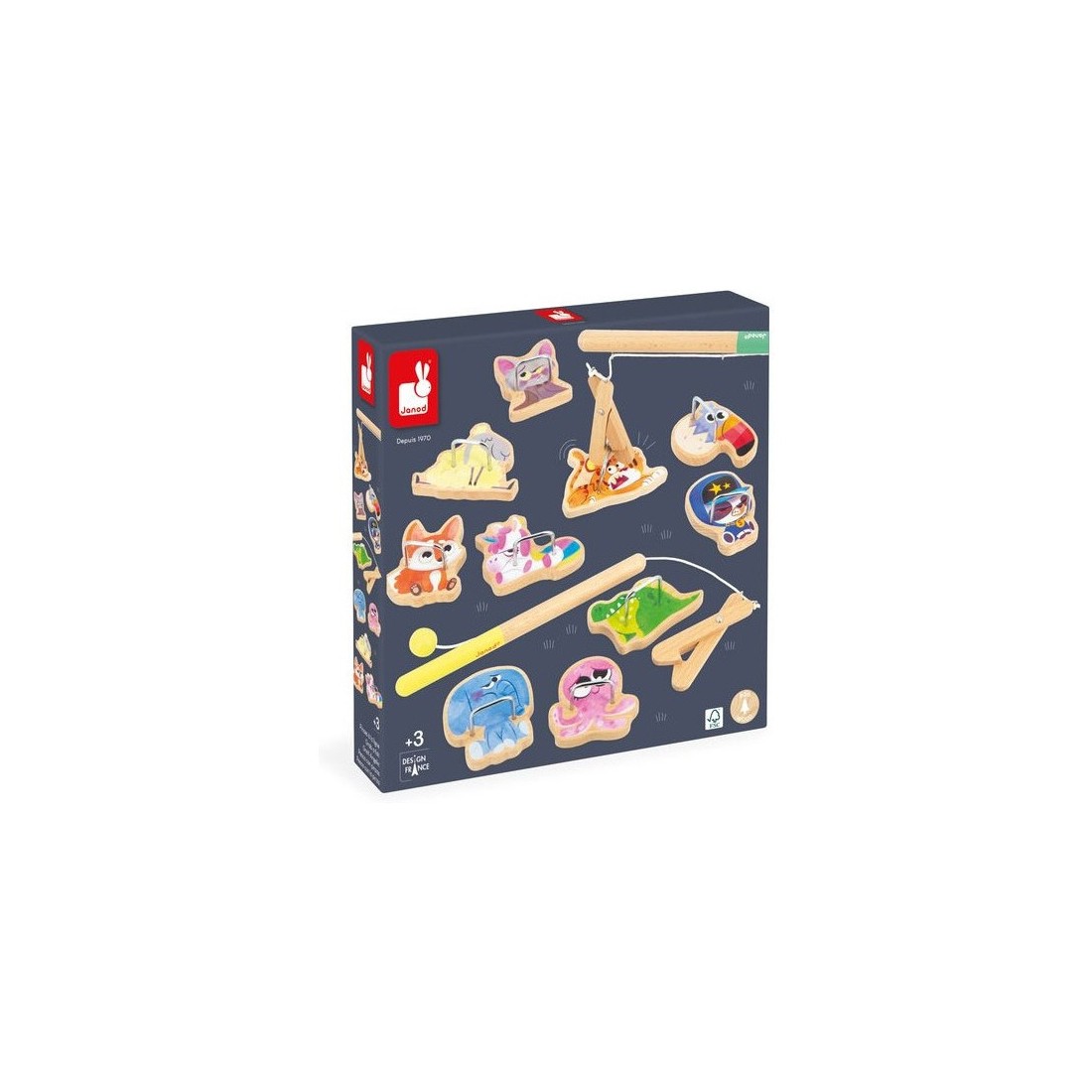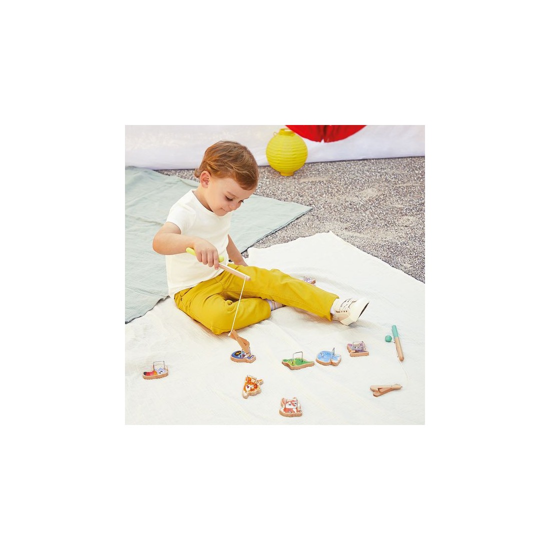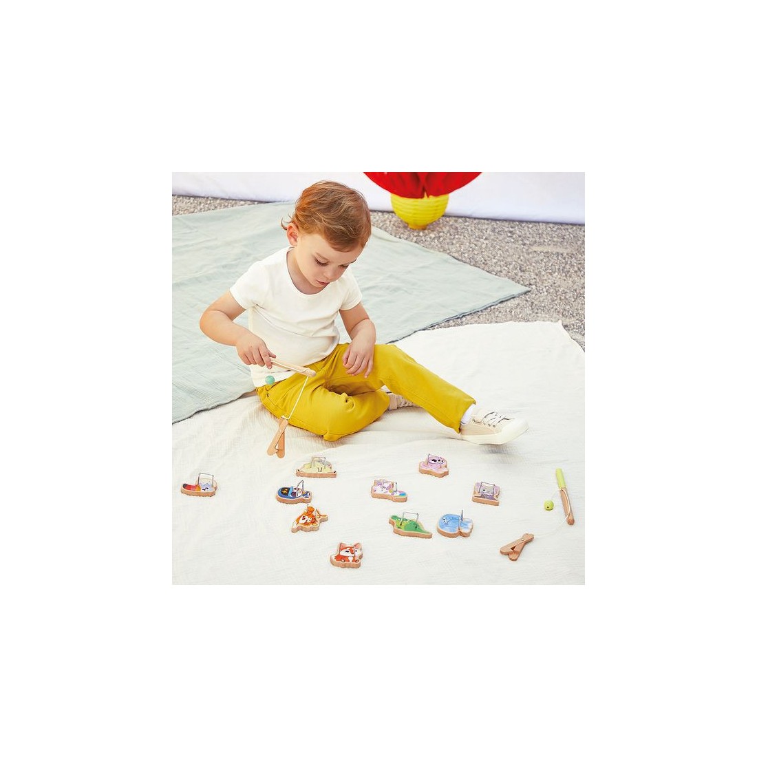 Approchez, approchez, venez tenter votre chance ! Plongez dans un univers festif et coloré avec ce jeu d’adresse en bois pour les enfants dès 3 ans. Conçu pour deux joueurs, ce jeu de pince offre une expérience de jeu qui stimule la dextérité et la coordination main-œil des petits, tout en garantissant des heures de divertissement. Tel un jeu de pêche à la ligne, avec des airs de fête foraine, ce jeu d'adresse comprend : 2 cannes avec pinces, 10 animaux farfelus à attraper, 1 sac en coton. Le défi ? Être le plus rapide à ramener le plus d’animaux. Le suspense et l’excitation seront au rendez-vous jusqu’à la dernière minute ! Et si plus de deux participants souhaitent tenter leur chance, chacun s'affronte à tour de rôle et affiche son score, ou on lance le chronomètre ! Le sac en coton inclus permet un rangement pratique ainsi qu’un transport facile. L’ensemble de ce jeu d’adresse en bois a été soigneusement pensé pour offrir une expérience de jeu festive et ludique. Il est idéal pour se lancer des défis en famille ou pour animer un anniversaire à la maison ! Alors, êtes-vous prêt à relever le défi ? Ce jeu d’adresse fait partie de la grande collection Applepop, une collection de jeux funs et décalés inspirée de l’univers de la fête foraine. Jeu de pêche à la ligne constitué de bois Fsc™.