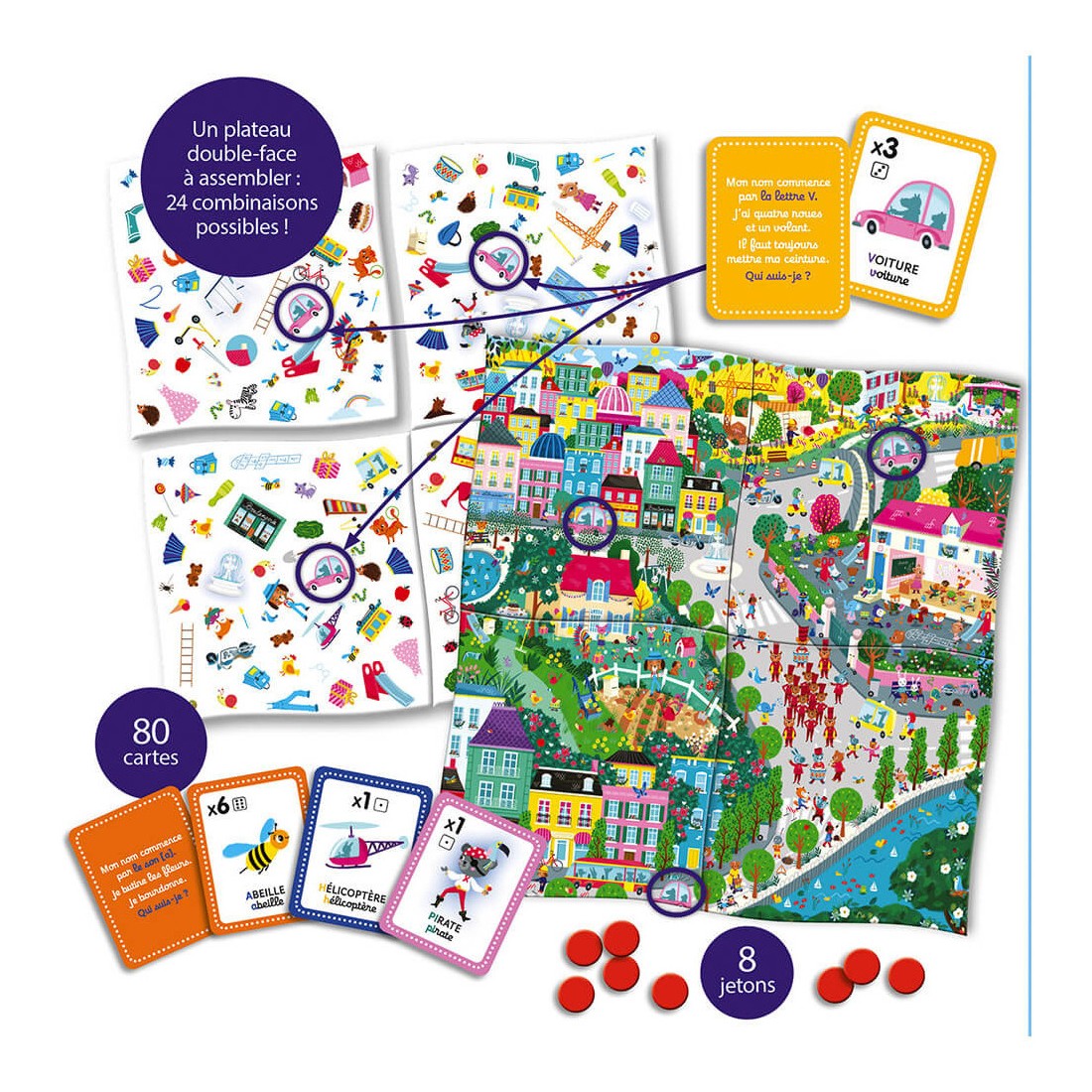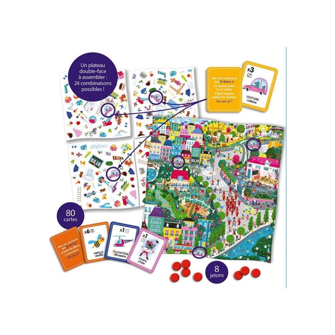 Le plateau de jeu est modulaire et recto-verso, ce qui est malin ! Il y a 4 pièces qui peuvent être retirées, ce qui permet 24 combinaisons. Il comprend un plateau de jeu, 80 cartes questions et 8 jetons. Ce jeu n'est disponible qu'en français. C'est excellent pour aider votre enfant à développer ses capacités de mémoire et d'assimilation. À partir de 5 ans Un à quatre joueurs.