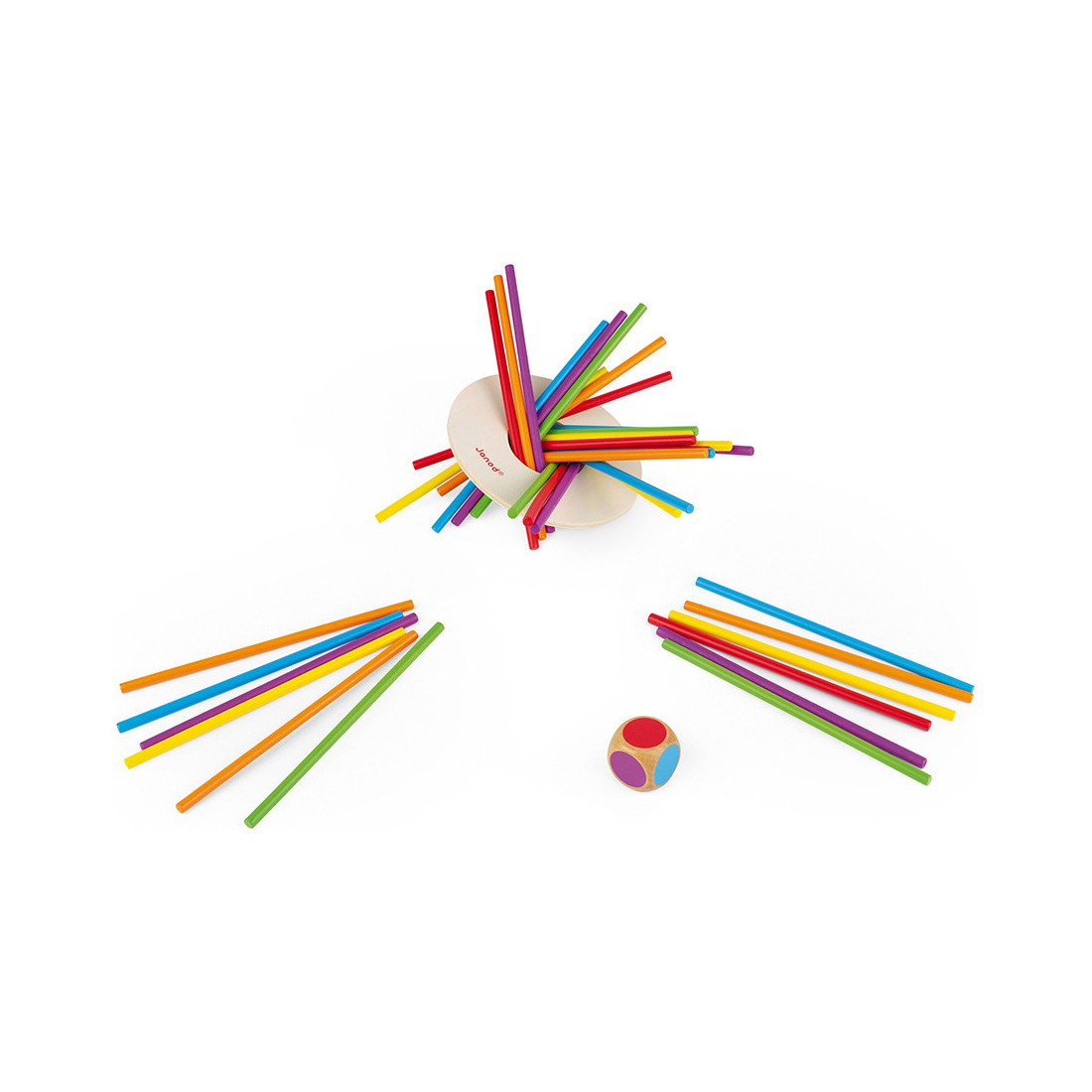 Fais preuve de sang-froid et défie tes adversaires avec ce jeu d'adresse haut en couleurs ! Le but de ce jeu est simple et accessible dès 3 ans. Votre enfant devra lancer le dé couleurs et retirer un des bâtons correspondants. Mais attention, au fur et à mesure l'équilibre devient de plus en plus fragile et le disque qui retient tous les bâtons descend, descend ... !