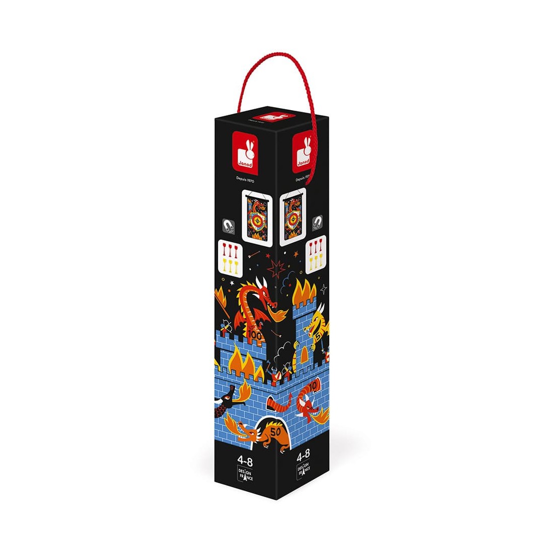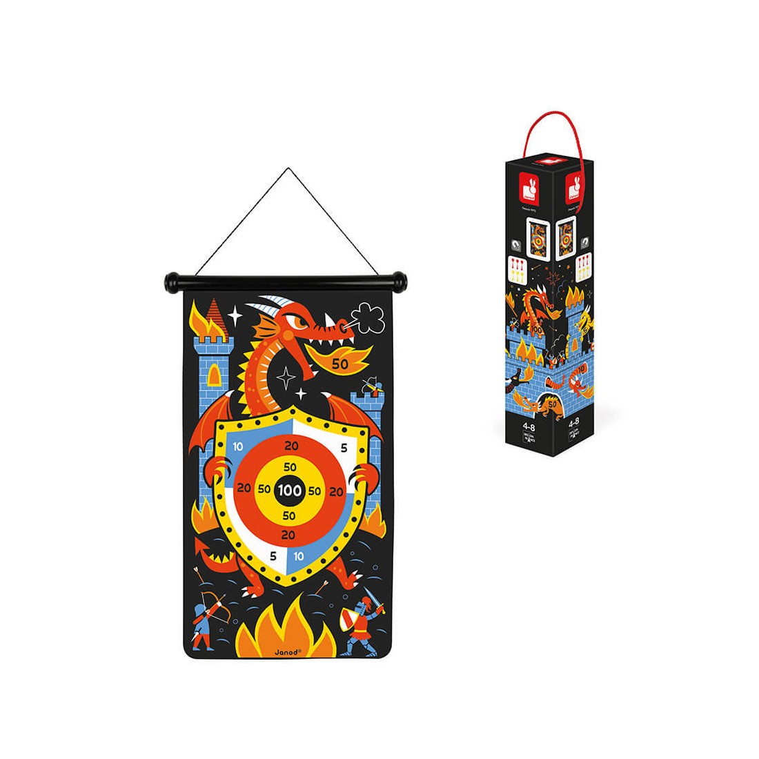 Ces fléchettes magnétiques sont sans danger pour les enfants dès l'âge de 4 ans. Plus de fléchettes piquantes. Les aimants adhèrent à la cible comme par magie. En famille, nous nous lançons des défis dans un environnement médiéval où dragons, chevaliers et châteaux en font partie.