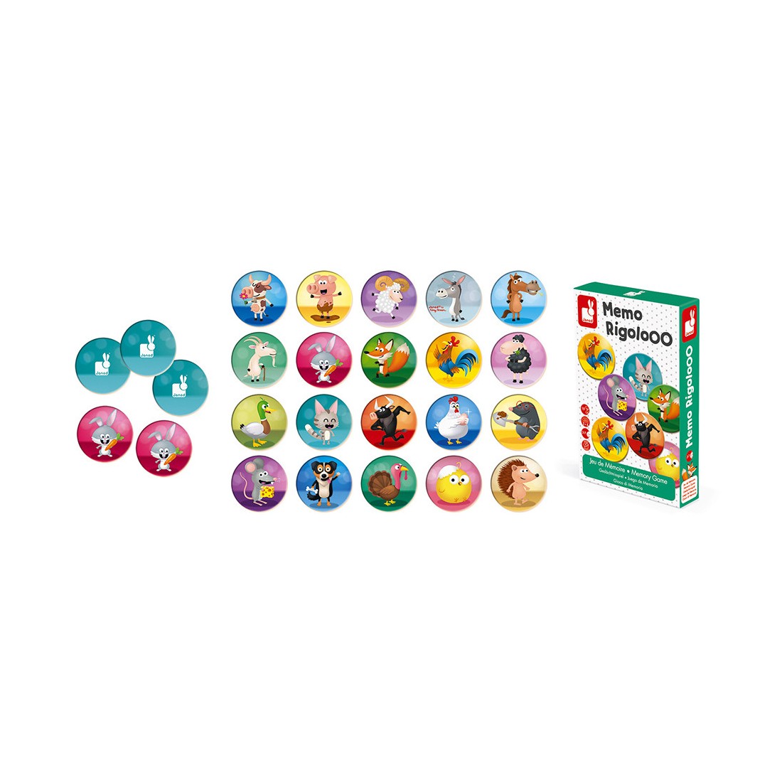 Voici le jeu de mémo de la marque Janod sur les thèmes des animaux rigolos.