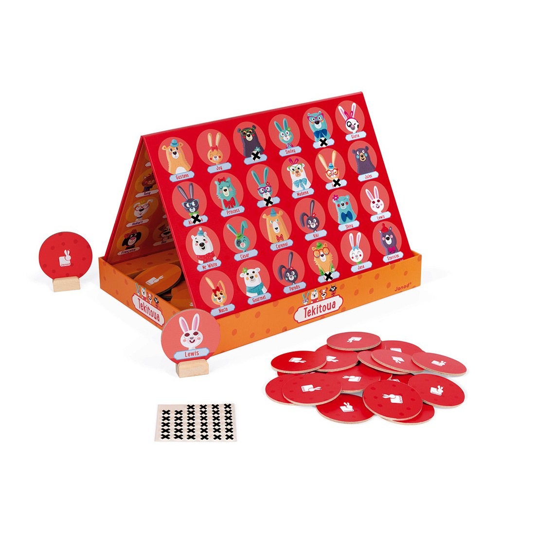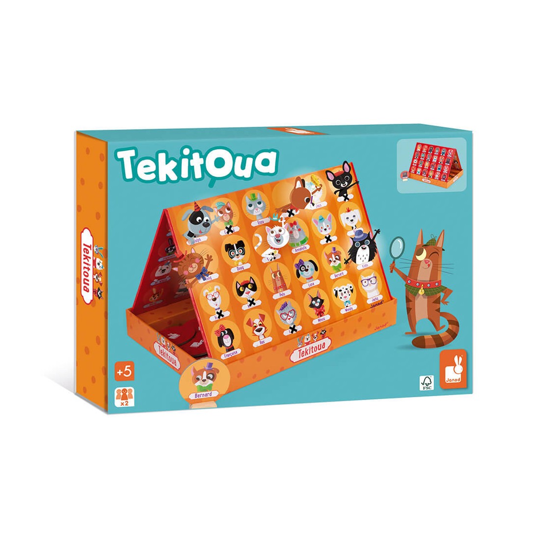 Saurez-vous retrouver l'animal de votre adversaire ? Pour cela, posez les bonnes questions ! Le jeu Tekitoua, adapté aux enfants de plus de 5 ans, les invite à faire preuve de stratégie et de déduction pour deviner quel animal possède son adversaire sur sa carte. Le jeu propose deux niveaux de jeu, soit débutant ou confirmé permettant ainsi de s'adapter à l'âge de l'enfant. .