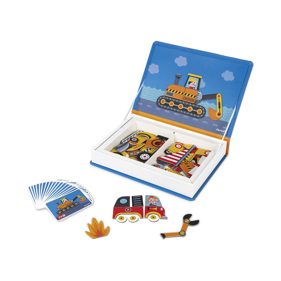 Un coffret qui renferme un trésor ! Le Magnéti'book s'offre une version bolides pour les passionnés d'engins en tout genre dès 3 ans ! Les enfants vont adorer créer et inventer des véhicules grâce aux 50 magnets fournis ! Ils auront le choix entre reproduire les modèles des véhicules des 18 cartes modèles (camion de pompier, sous-marin, tank, bateau, avion…) ou puiser au fond de leur imagination pour créer les véhicules du futur !
