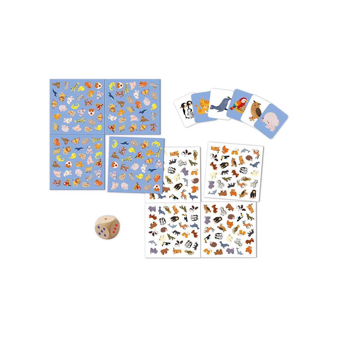 Les 20 cartes recto-verso incluses fonctionnent comme le plateau. Au total, ce jeu d'observation contient : 1 plateau de jeu double-face en 4 parties, 20 cartes recto-verso et 1 dé en bois. L'autre atout de ce jeu collaboratif, ce sont les différents modes de jeu : de 1 à 4 joueurs, les enfants peuvent former une équipe pour retrouver facilement le plus d’animaux et gagner tous ensemble !