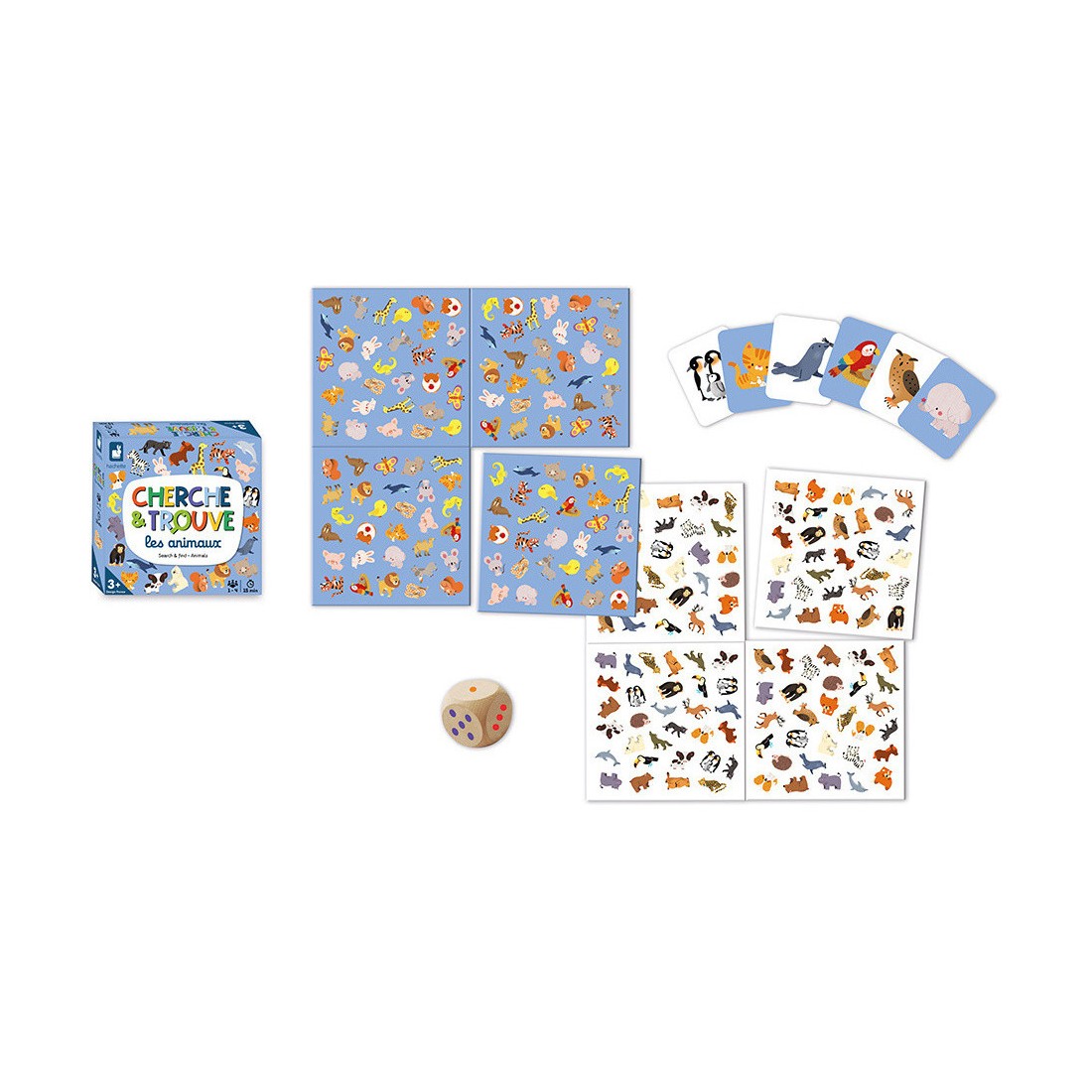 Partons à la recherche des animaux ! Ce jeu de Cherche et Trouve est destiné aux enfants à partir de 3 ans. L'objectif : retrouver l'élément de sa carte sur le plateau autant de fois que le nombre indiqué sur le dé. Au royaume de nos amies les bêtes, ce sont des animaux marins, des mammifères et toutes sortes d’animaux sauvages qu'il faudra retrouver !