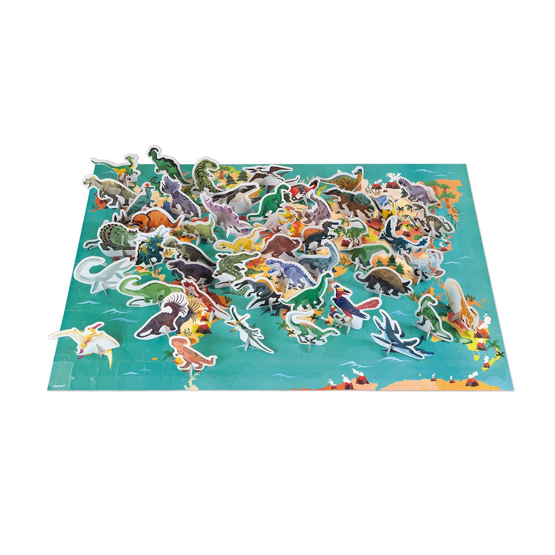 Composé de 200 pièces, il est accompagné d’un livret éducatif complet pour partir à la rencontre de ces créatures incroyables et découvrir leurs caractéristiques. 50 dinosaures en carton hauts de 10 cm sont également à assembler et à placer sur le puzzle : une activité ludique et amusante ! Le nom des dinosaures est indiqué au dos de chaque figurine.
