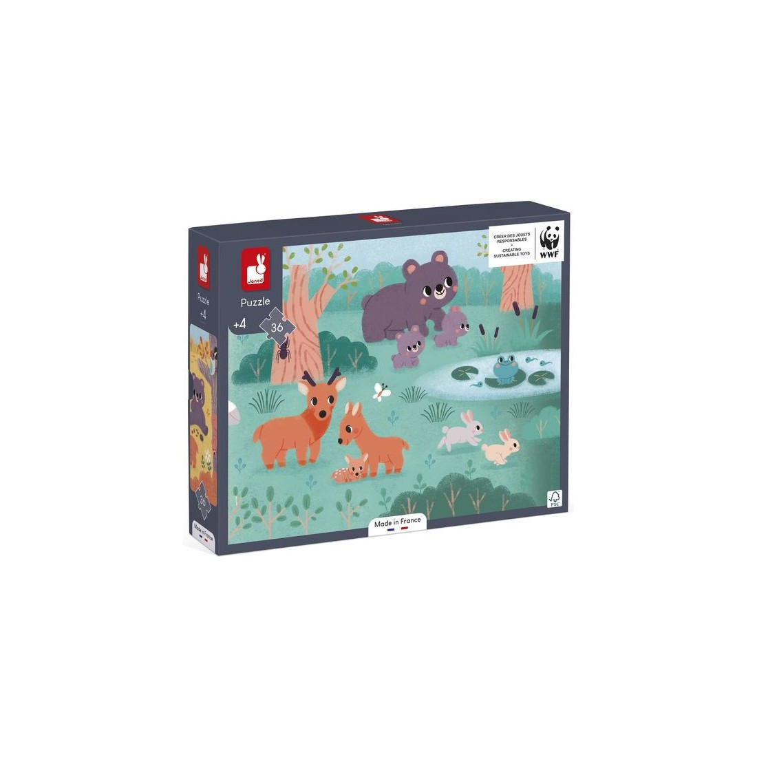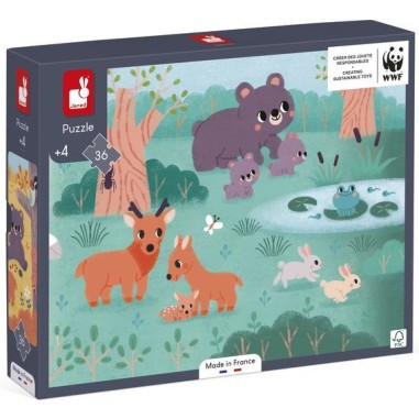 Un poster permettra d'aider les enfants lors des premières réalisations. Familles loups, ours et lapins attendent les petits pour l'exploration ! Ce jouet est développé en collaboration avec Wwf®. Janod soutient les efforts du Wwf® pour protéger l’environnement et la biodiversité grâce à une gamme de jouets fabriqués à partir de matériaux plus durables. À travers cette gamme, nous visons à inspirer et à permettre à la jeune génération de se mobiliser pour la faune et la nature.