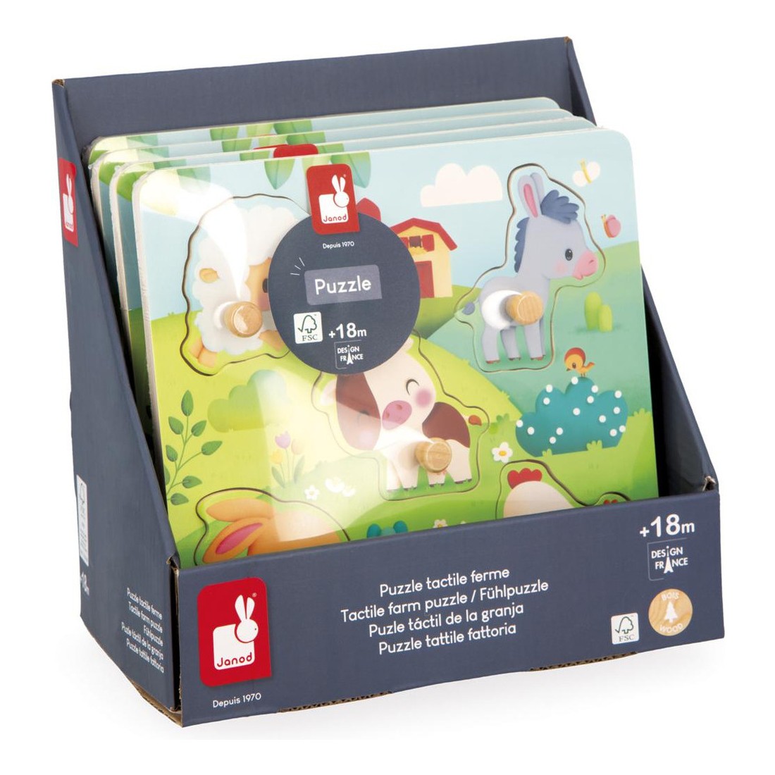 Dans son format carré de 21 x 21 cm, ce puzzle tactile ferme est composé de bois issu de forêts gérées durablement, certifié Fsc™. Prêts pour la découverte tactile ?