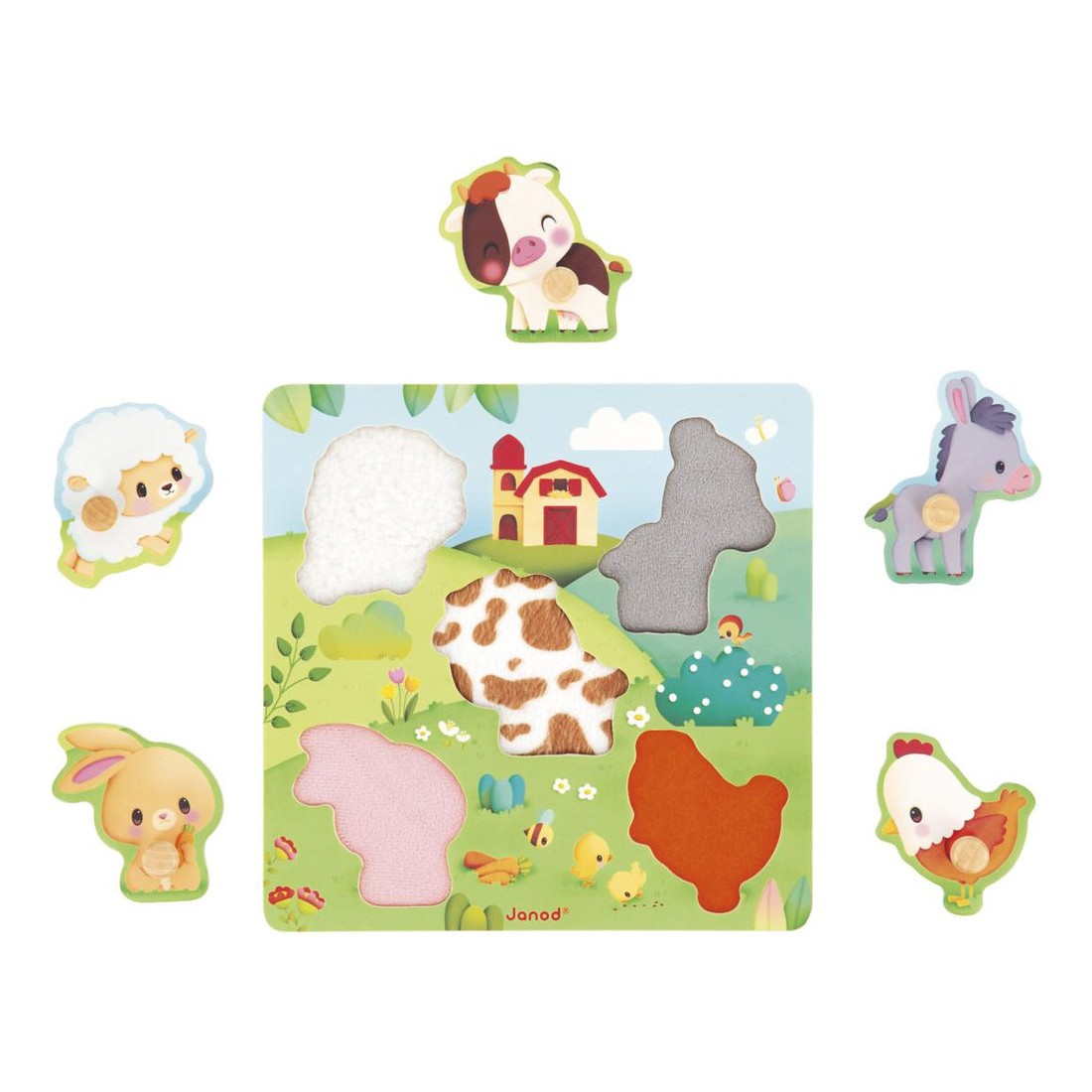 Sur ce jouet d’éveil, bébé retrouve des animaux trop mignons : un mouton, un âne, une vache, un lapin et une poule. Bercé par l’univers de la ferme, où la nature vit au rythme des saisons et où les découvertes sont variées, bébé éveille ses sens et profite d’une activité calme et ludique.