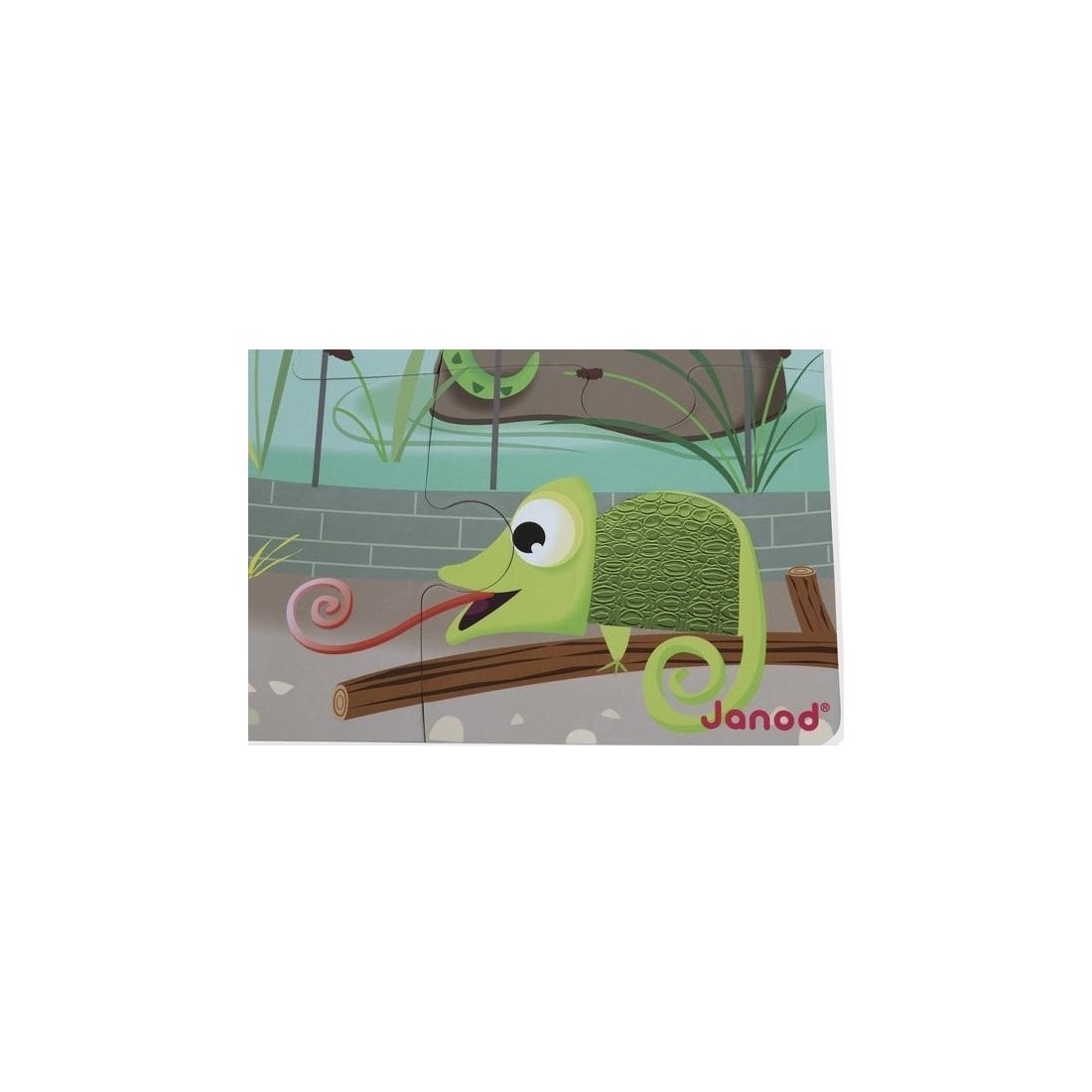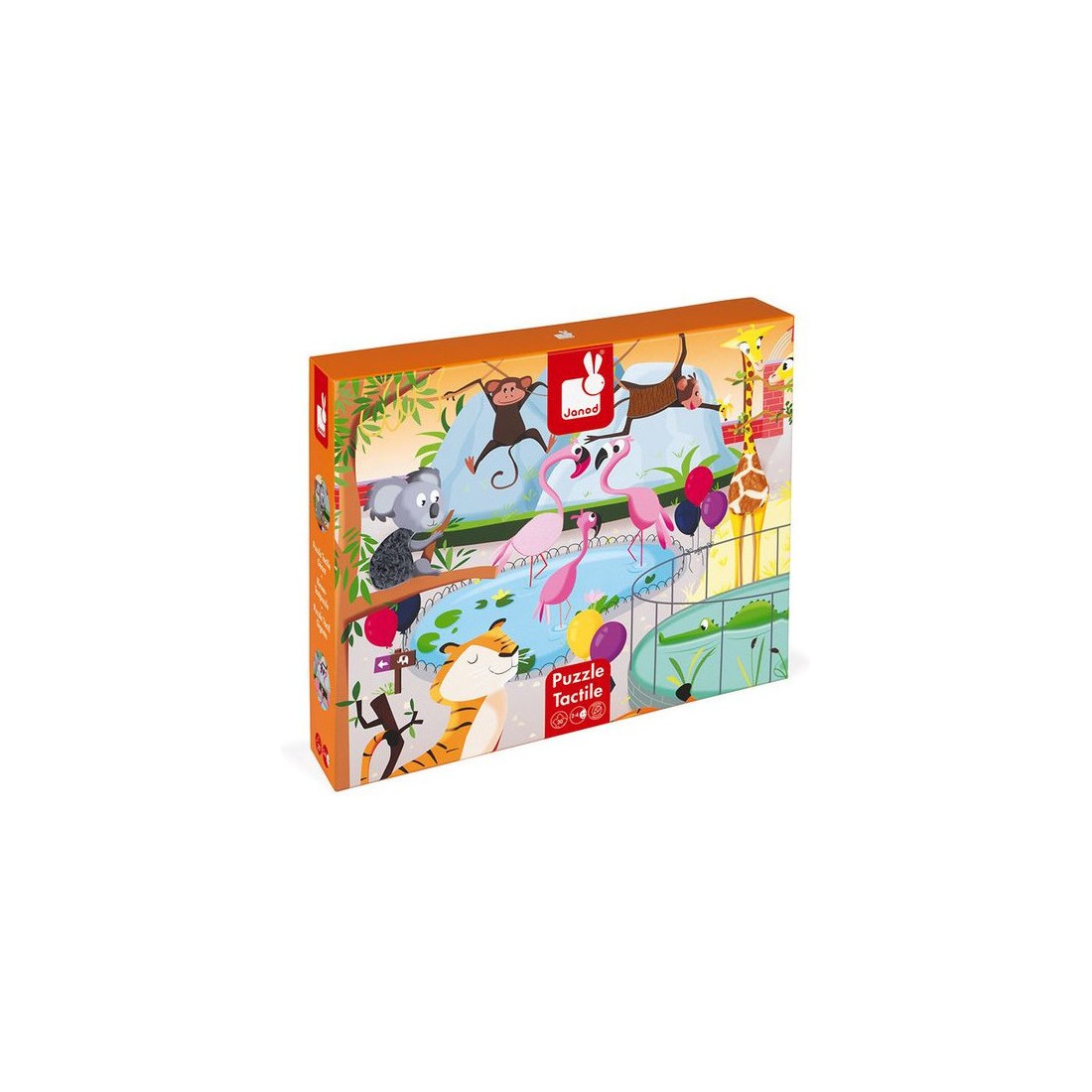 Le puzzle tactile Une journée au zoo de la marque Janod développe l'imagination et la motricité des tout-petits tout en s'amusant.