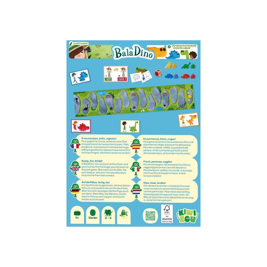 Une douce initiation à la prise de risque. Dans ce jeu de course original, les joueurs doivent gérer 2 pions : leur pion maitre et leur pion Dino. Pour gagner la partie, seul le pion Dino compte : le premier dino qui arrive à la fin du parcours remporte la course. Mais les joueurs devront aussi gérer leur pion maitre et le faire avancer.