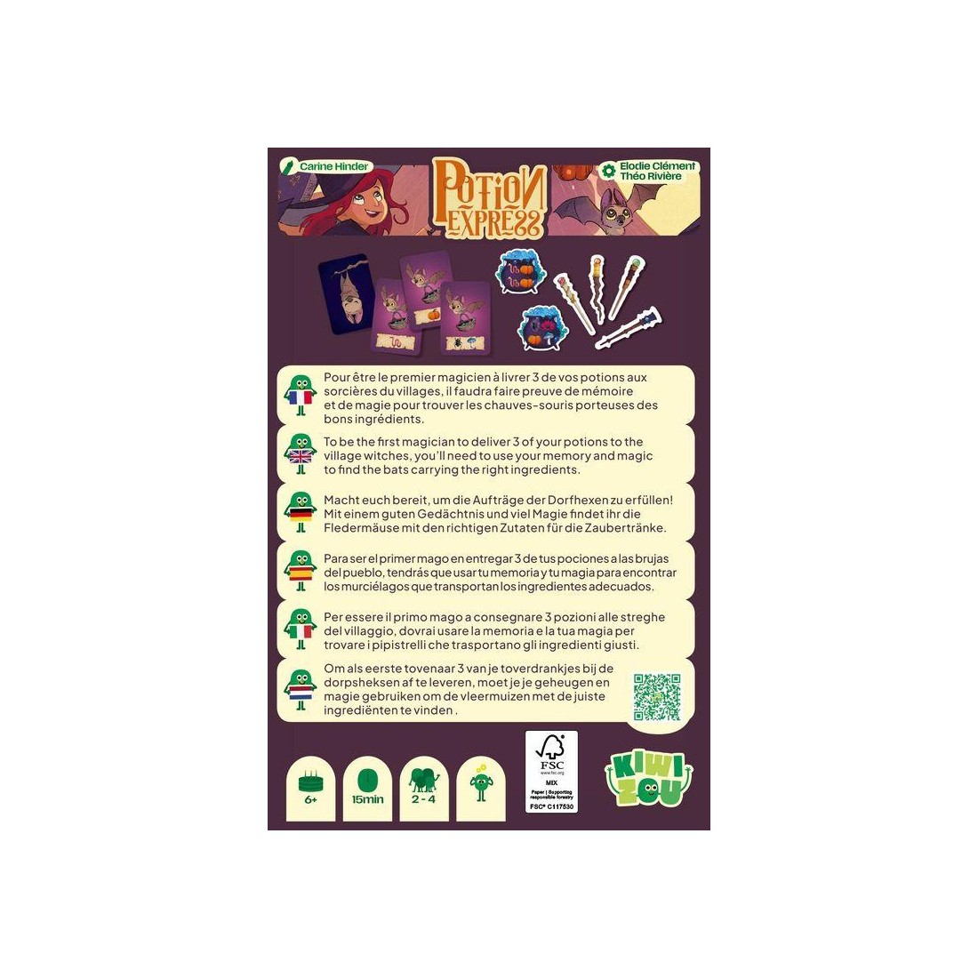 Un jeu de collecte malin et progressif ! Au fil des tours de jeu les joueurs devront mémoriser la position des chauve-souris afin de récupérer les ingrédients utiles pour la préparation des potions.