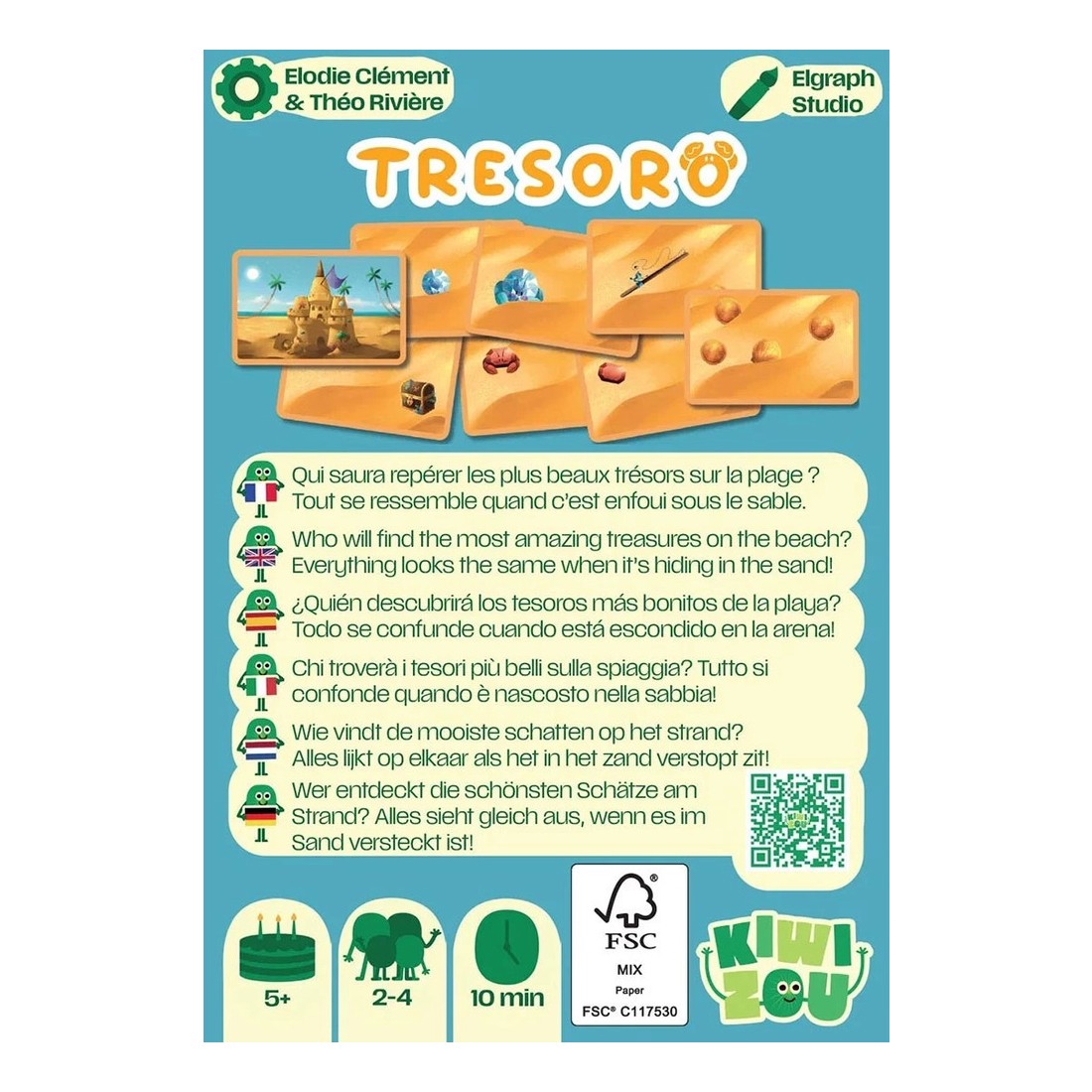 Dans le jeu Tresoro, les joueurs se retrouvent sur une plage mystérieuse où de nombreux trésors sont enfouis sous le sable… Mais, une fois enterrés, tous les trésors semblent identiques ! Ce jeu d’observation et de prise de décision invite vos petits explorateurs à analyser attentivement la disposition des cartes pour faire les meilleurs choix au bon moment.