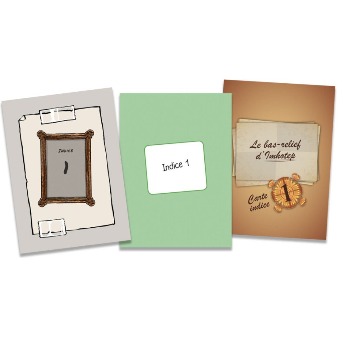 Si vous éprouvez des difficultés, des cartes indices à disposition : pour chaque tableau, 6 cartes indices sont disponibles, à retourner dans leur ordre de numérotation. Mettez votre égo de côté, elles sont là pour vous aider !
