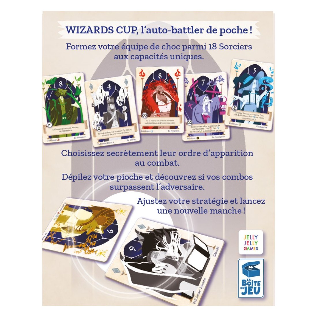 Wizards Cup se déroule en 2 manches gagnantes (donc 3 manches maximum). Chaque manche se joue en utilisant 6 cartes Sorciers. Les Sorciers vont s’affronter en Duel les uns après les autres en comparant leurs pouvoirs et leurs forces. Chaque joueur sélectionne 6 de ses Sorciers qui seront utilisés pendant toute la partie.