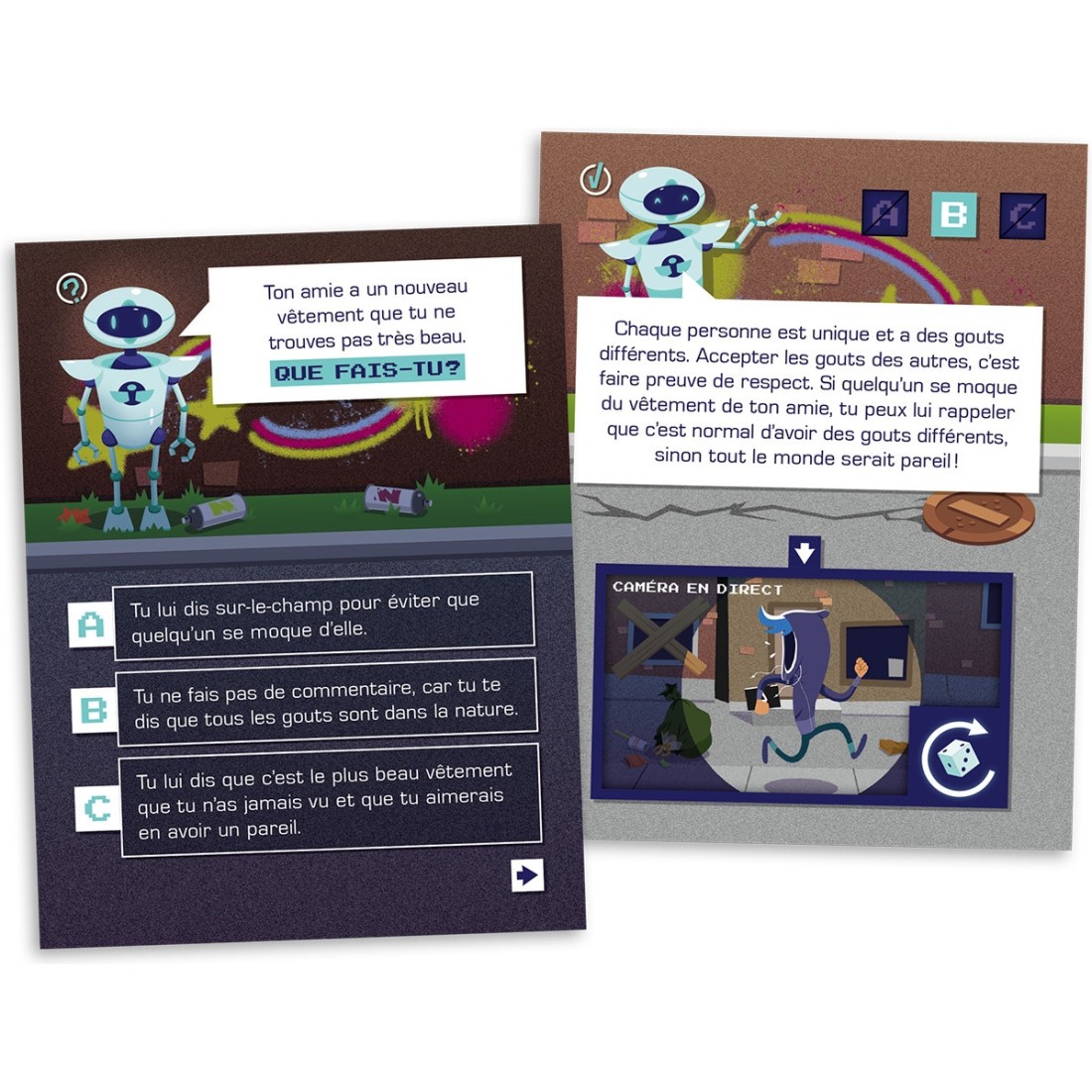 Le code social est conçu pour stimuler le développement des habiletés sociales des enfants de 6 à 10 ans. Il présente des mises en situation qui ont été pensées pour eux, autant sur le plan des habiletés ciblées que de celui des contextes proposés.