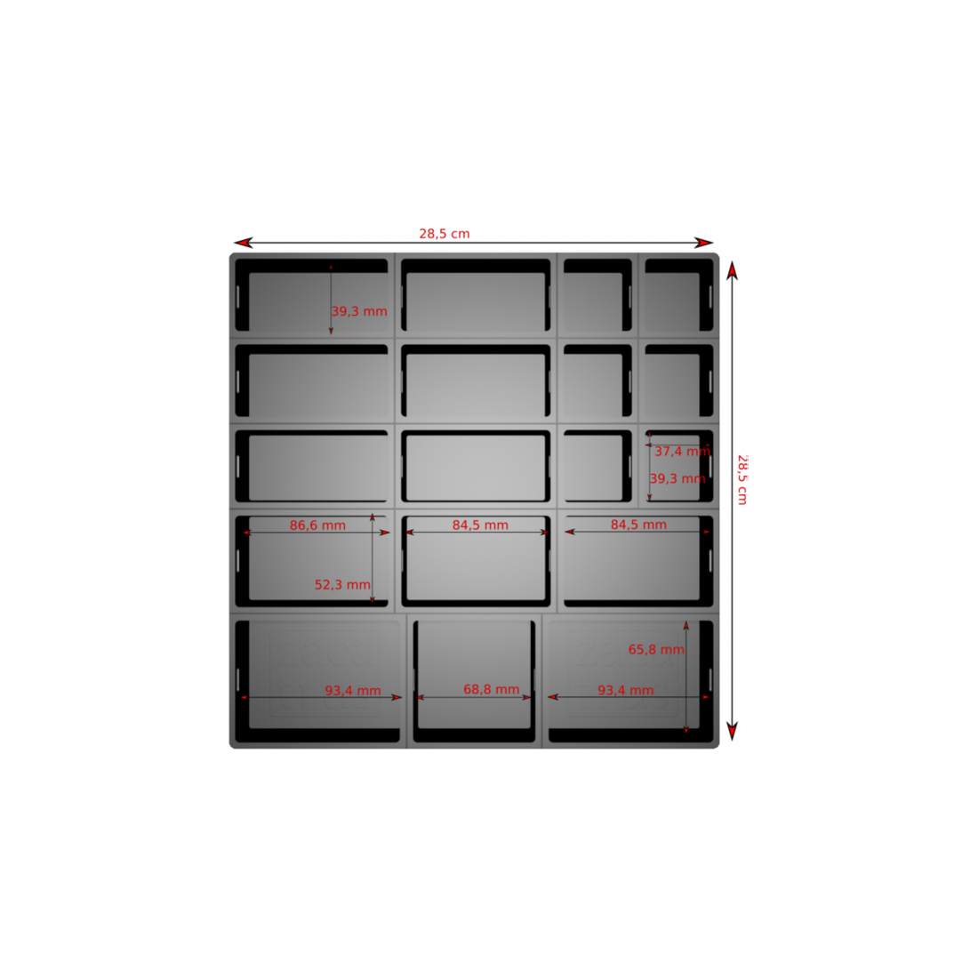Découpez le plateau (avec le couvercle) selon votre goût, vos besoins, la taille des boîtes... puis rangez ce que vous voulez !