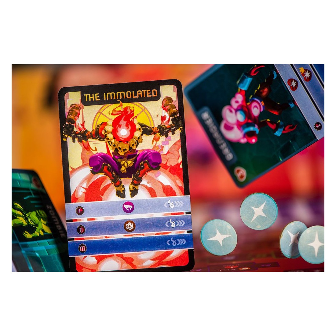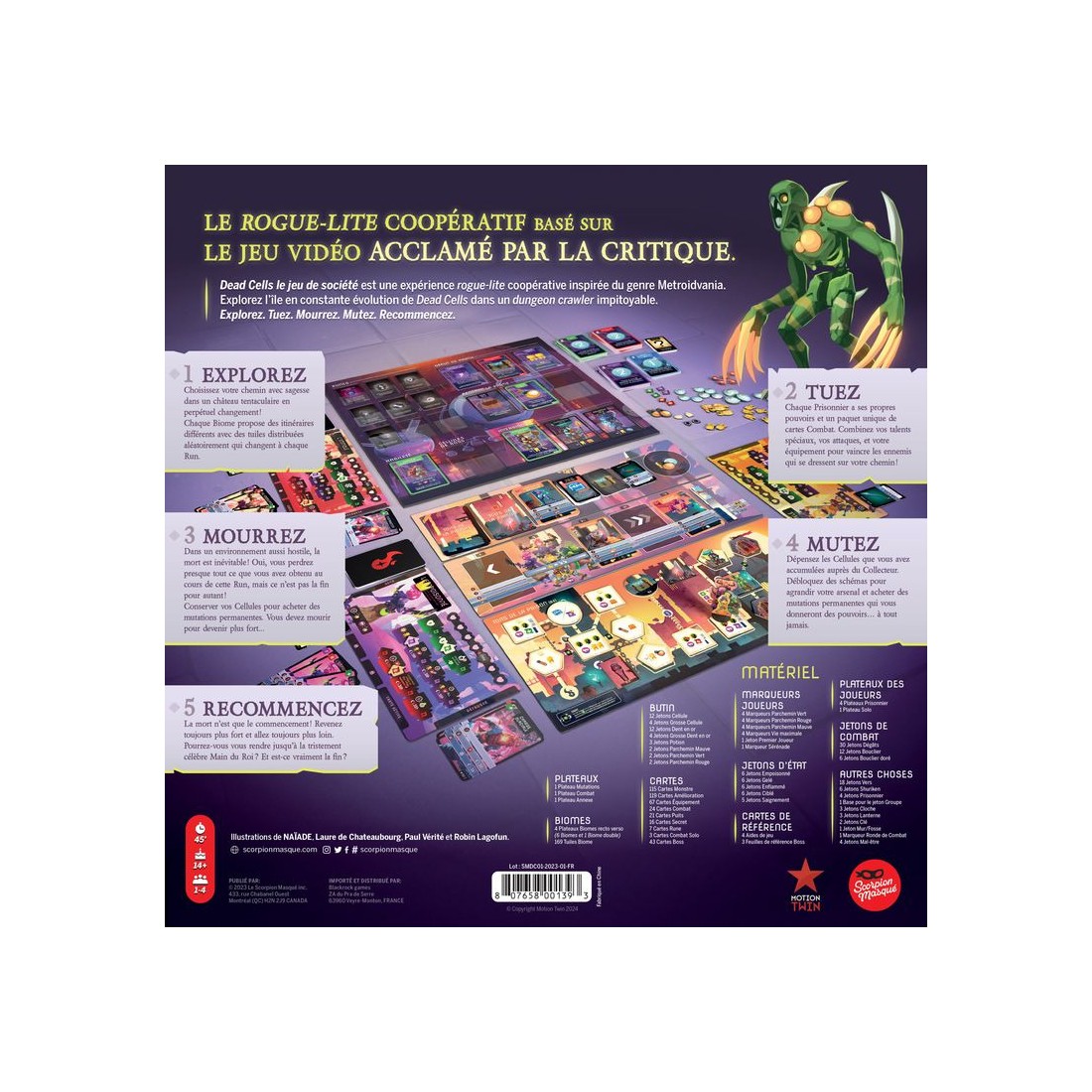 Avec le jeu de société Dead Cells, vivez une expérience de jeu coopérative rogue-lite inspirée du genre Metroidvania. Explorez l’île en constante évolution de Dead Cells dans un dungeon-crawler impitoyable. Explorez. Tuez. Mourrez. Mutez. Recommencez.