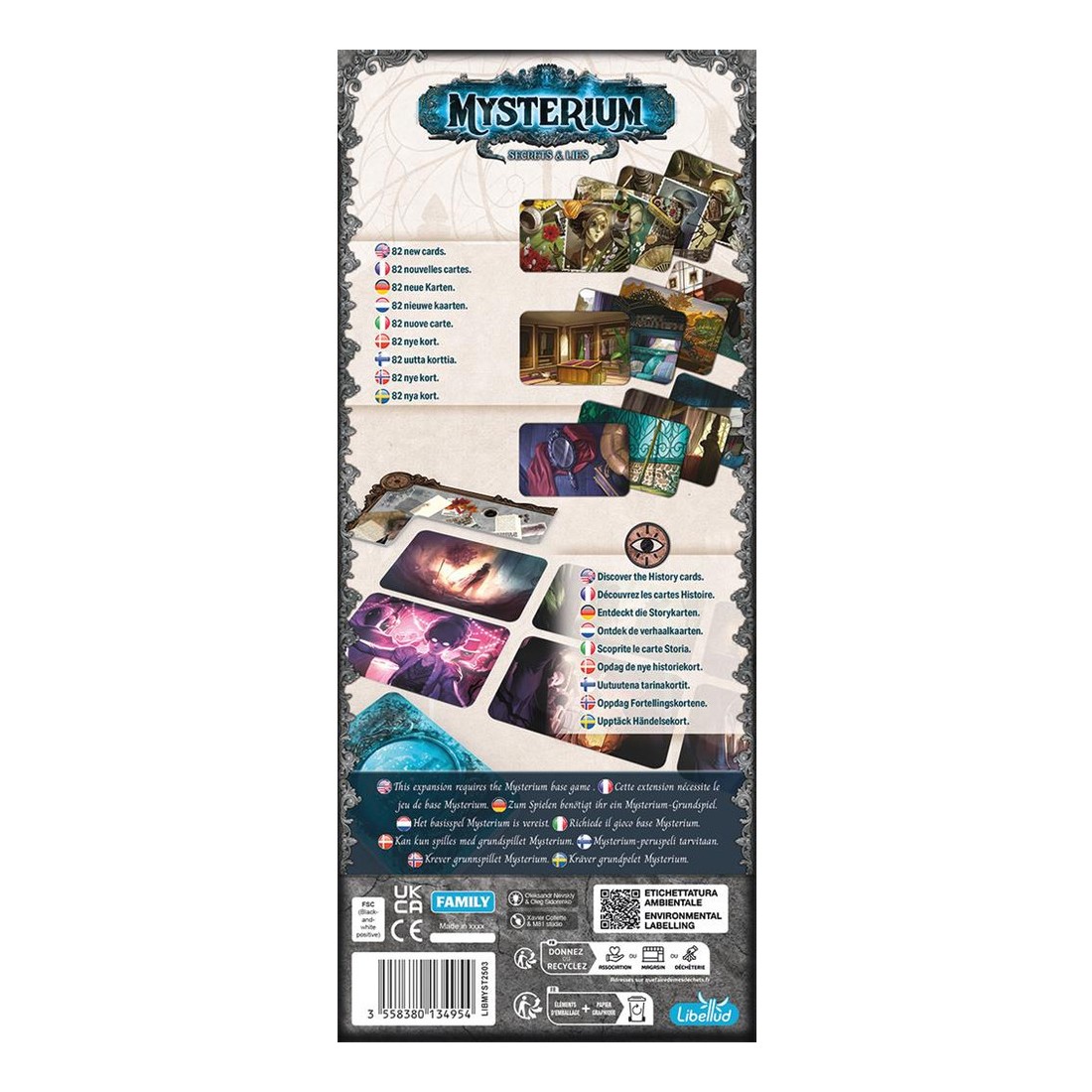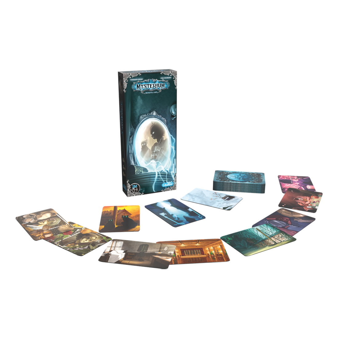 Mysterium, le jeu d’enquête coopératif et asymétrique revient avec une deuxième extension : Mysterium Secrets and Lies. 6 personnes, 6 lieux et 6 objets permettent de créer des configurations de parties inédites, le fantôme dispose également de 42 visions supplémentaires. Les 19 cartes histoire peuvent remplacer les objets et offrent une nouvelle manière de jouer.