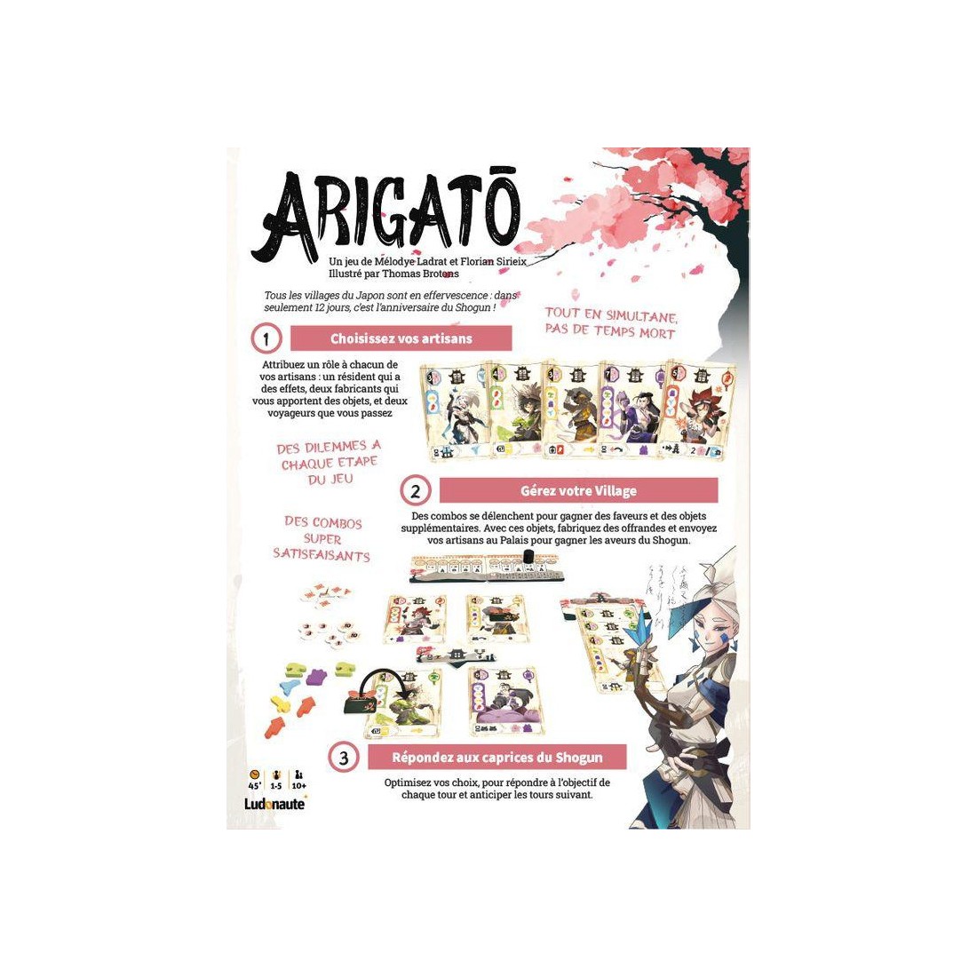 Dans Arigato, vous incarnez la personne en charge de votre Village. Dans 12 jours, c'est l'anniversaire du Shogun et votre objectif est de gagner ses faveurs. Pour cela, vous allez lui préparer de somptueuses offrandes grâce au savoir-faire de vos meilleurs artisans. Aidez-les à les préparer, et envoyez-les au palais.