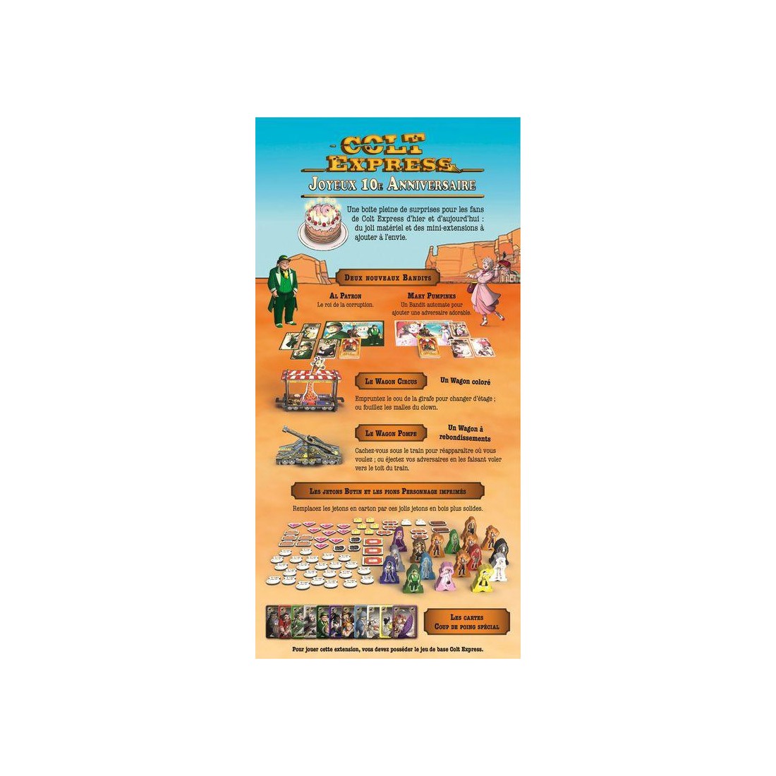 Une boite pleine de surprises pour les fans de Colt Express d’hier et d’aujourd’hui : du joli matériel et des mini-extensions à ajouter à l’envie.