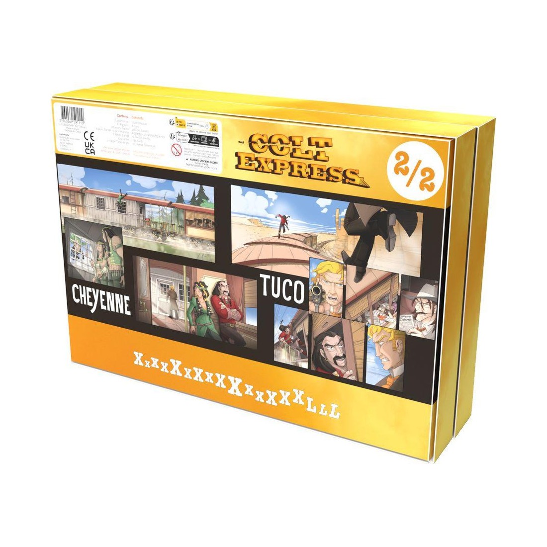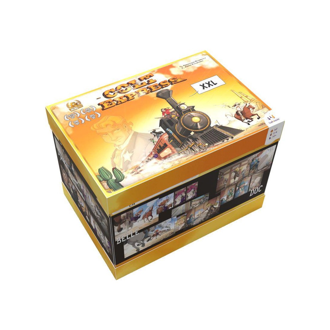 Colt Express Xxl c'est le jeu de base en version géante. Un jeu de société mêlant stratégie, chaos et… coups de feu ! Plongé dans l’Ouest sauvage, chaque joueur incarne un bandit de grand chemin, avec l’ambition de dévaliser un train tout en échappant à l’autorité du Marshall et à la vigilance des autres bandits.