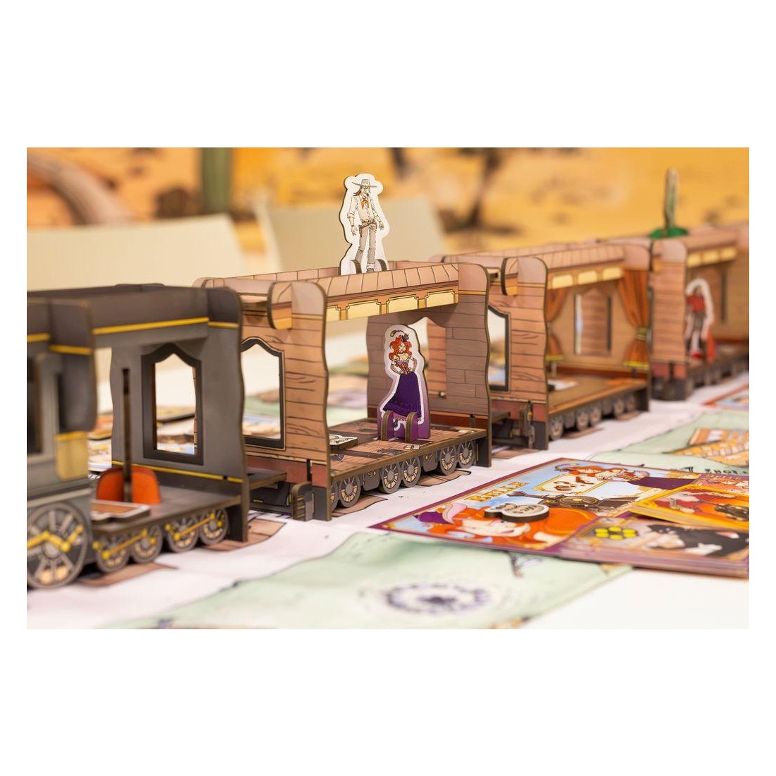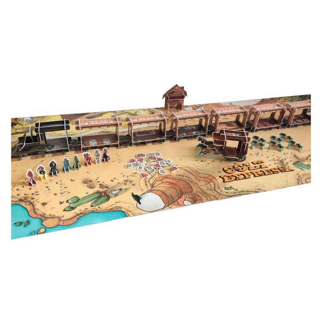 (Re)découvrez le plaisir de Colt Express, Le jeu de Bandits où tous les coups sont permis. Entre les wagons et sur le toit du train 3D, les balles fusent. Le Marshall patrouille et contre-carre les plans des bandits. Chacun a sa propre personnalité, mais au bout du compte, tous n’ont qu’un seul but : devenir le plus riche en détroussant les passagers avant que le train n’arrive en gare.