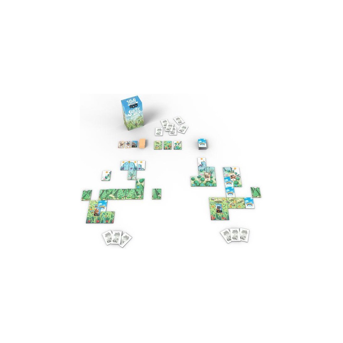 Il faudra faire attention à ne pas laisser de tuiles à l'adversaire tout en optimisant son paysage selon les choix de celui-ci. Aussi, créez des carrés de tuiles pour récupérez des esprits qui vous aideront en cours ou en fin de partie. L'expérience est... zen et très rapide à mettre en place !
