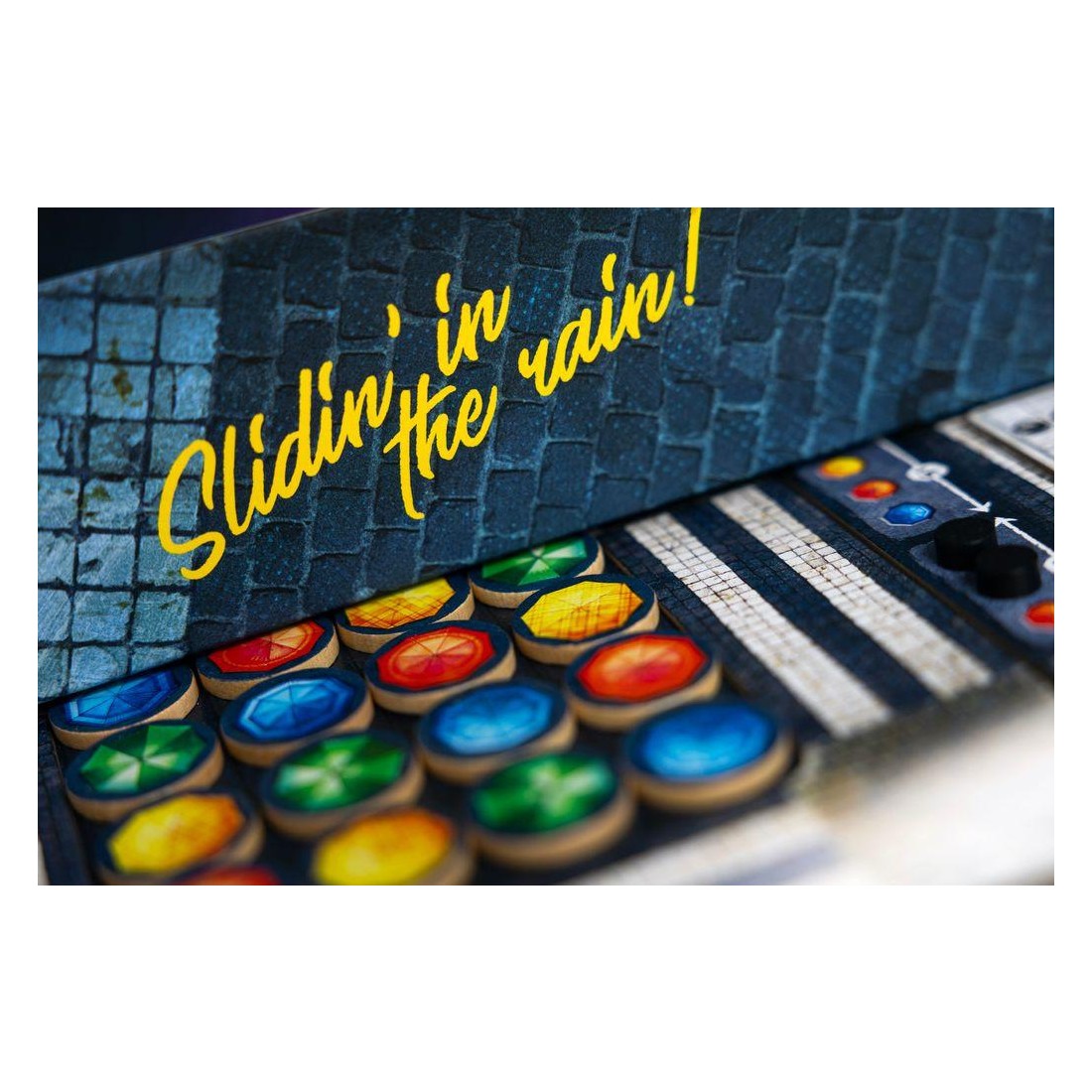 La mécanique est "simple comme un slide" ! Exemple : prenez un parapluie à droite, faites le glisser de droite à gauche sur une des 4 ligne de sa scène, le parapluie qui resort de l'autre côté est posé sur la zone d'attente à sa gauche et le tour est terminé. Vous avez donc 4 possibilités de "slide" en vertical et en horizontal !