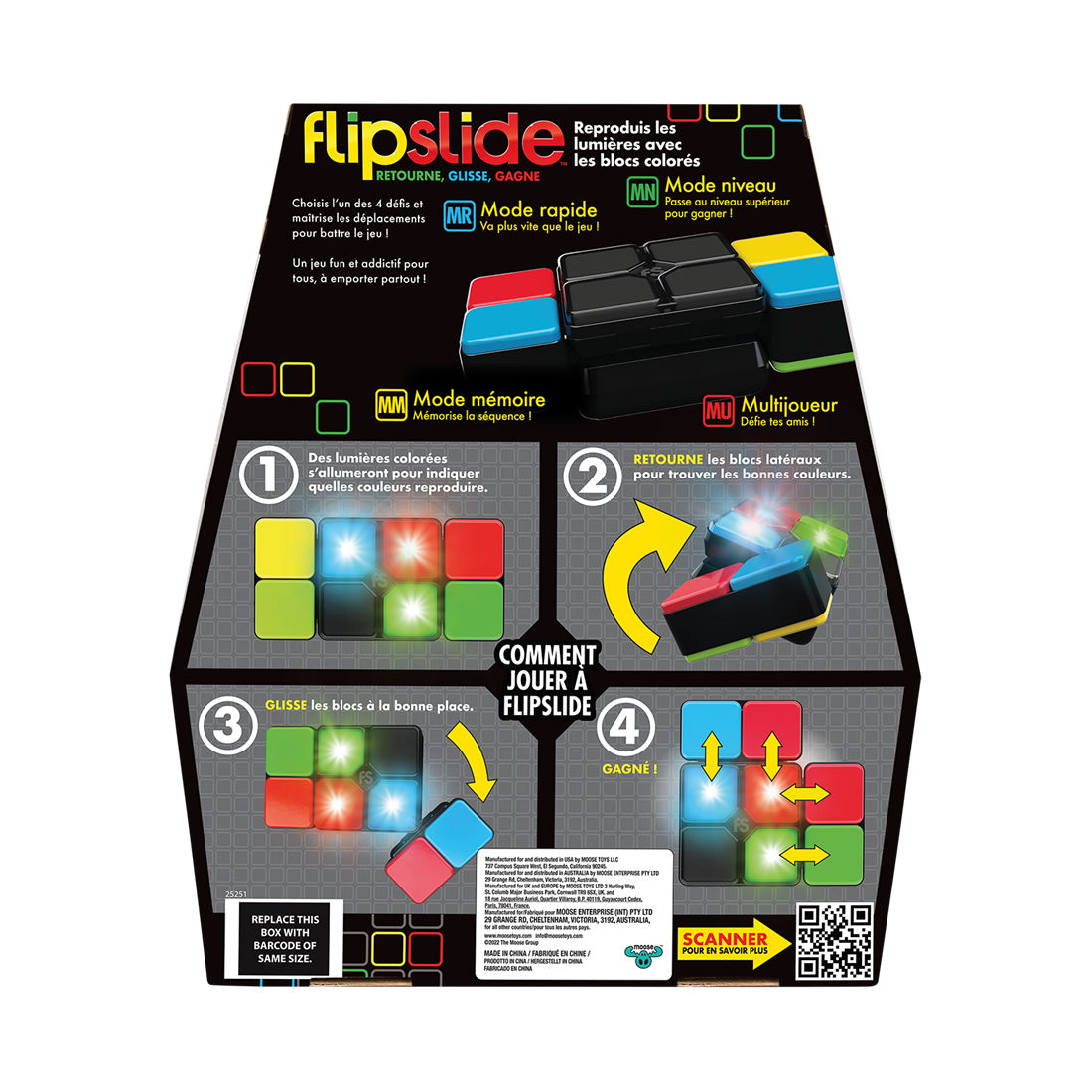 Flipside est un jeu de combinaison addictif et rapide ! Allumez votre flipside et choisissez entre 4 modes de jeu, dont un multijoueur. Les quatre blocs centraux s’illuminent en indiquant des couleurs, glissez et retournez les blocs latéraux pour aligner les bonnes couleurs. Vous ne pourrez plus vous arrêter, que vous décidiez de défier le jeu dans le mode vitesse, mémoire ou niveau.