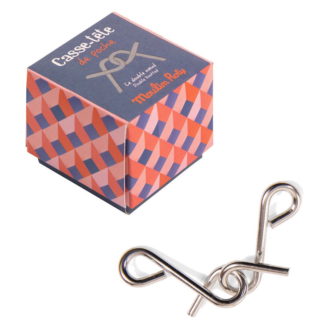 Deux pièces métal conçues pour nous faire des nœuds au cerveau… Défis tes neurones et amuse-toi à les séparer ! Solution fournie dans la boîte.