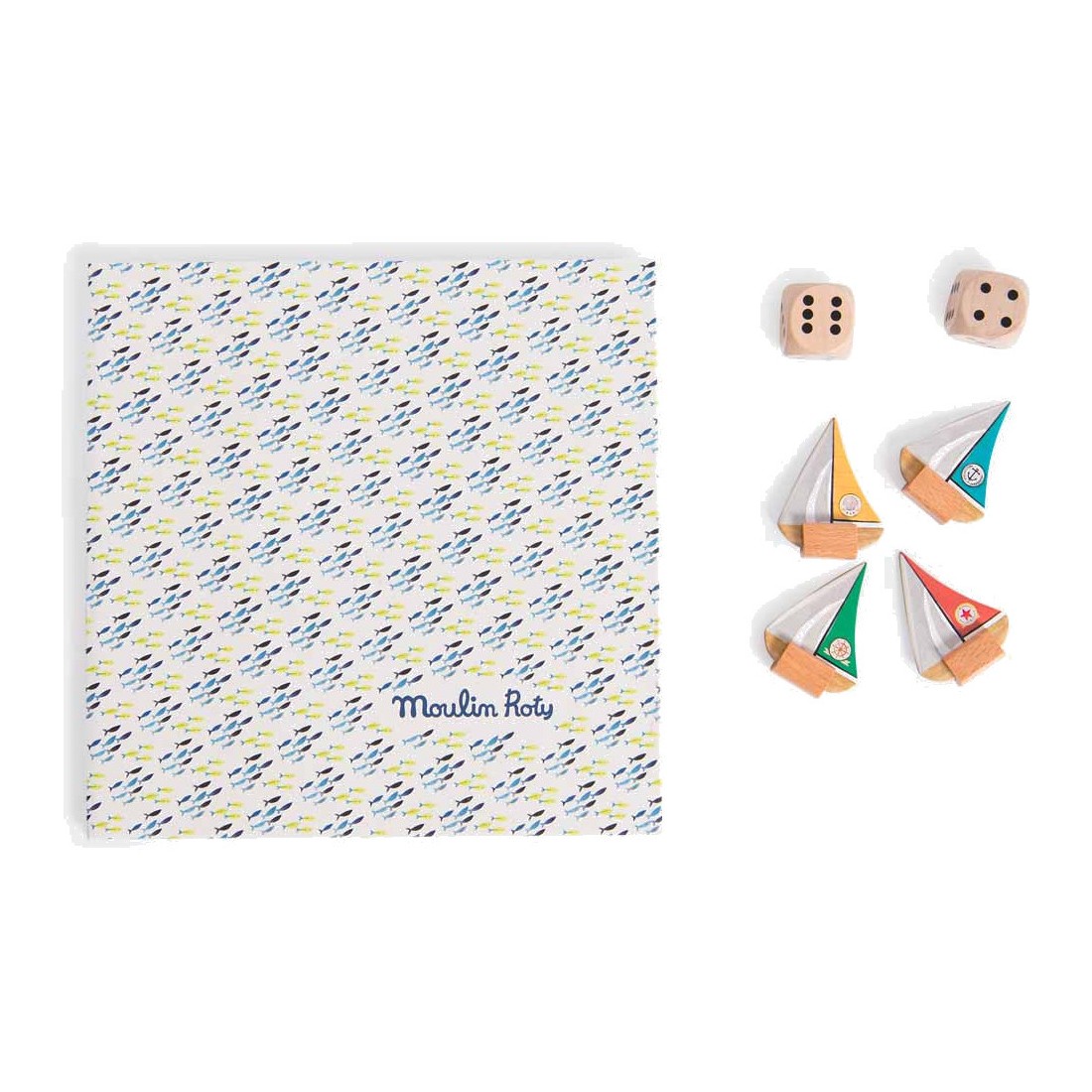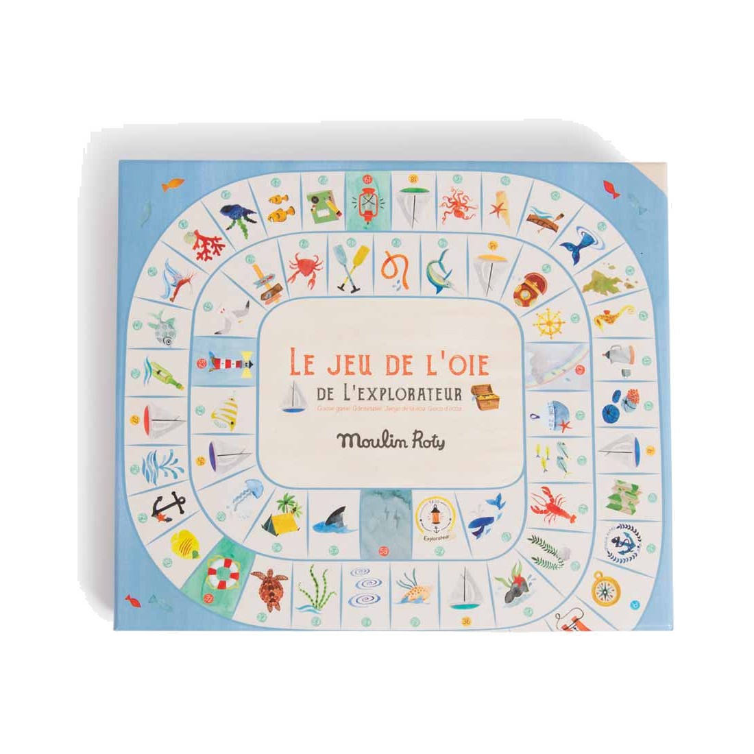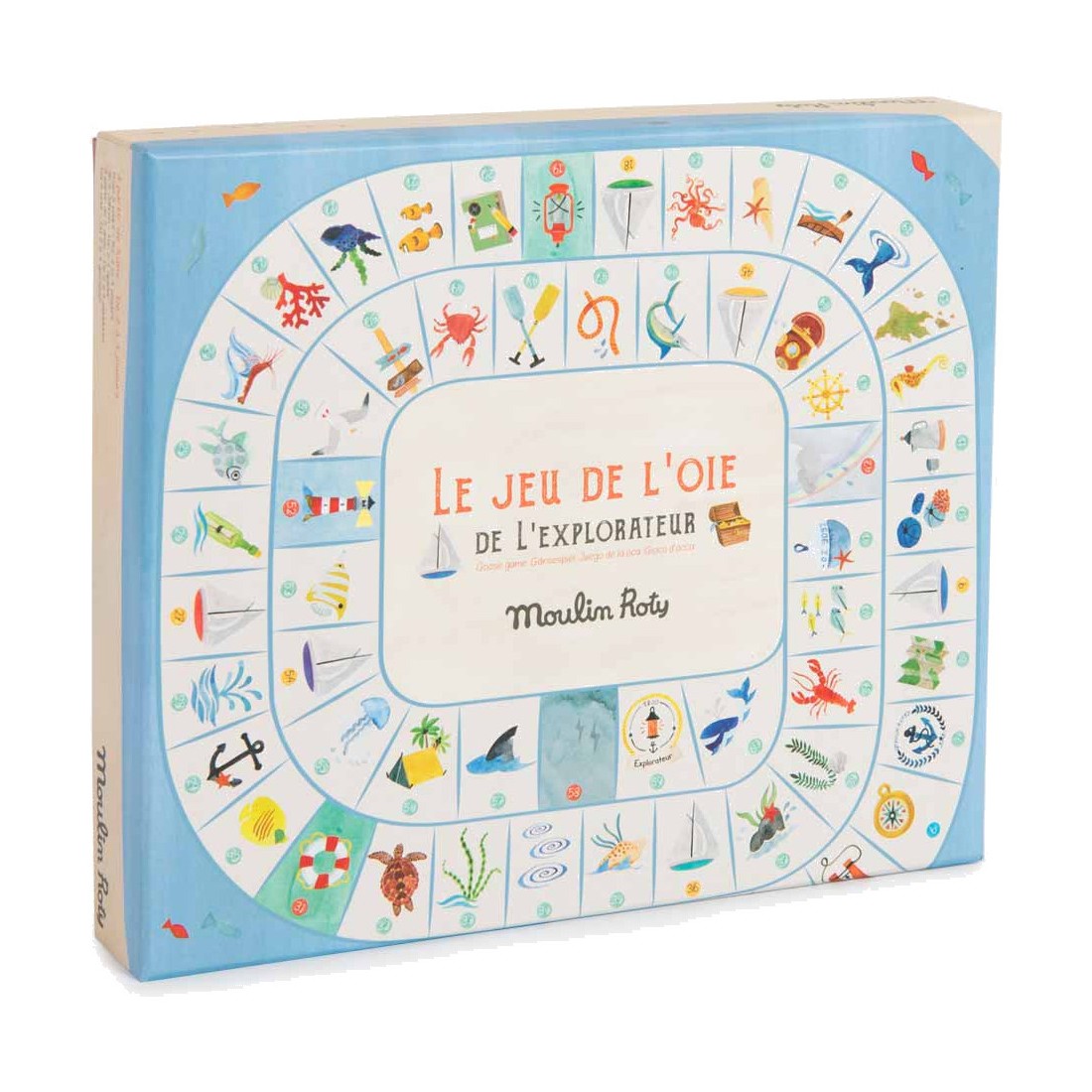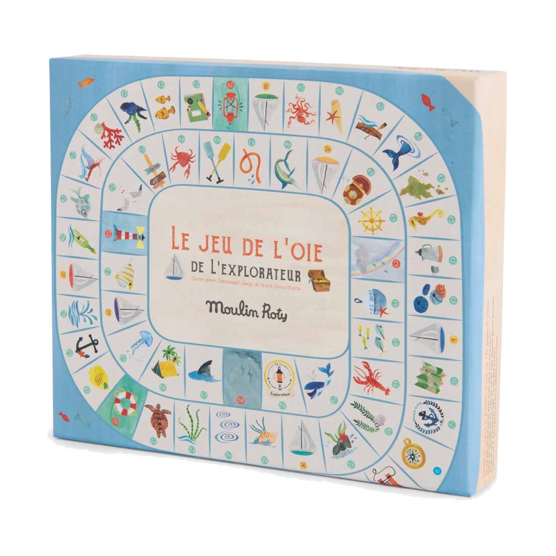 Un jeu de l'oie spécial explorateur où l'on croise de drôles de poissons et de dangereux tourbillons… Hissez les voiles, le premier arrivé sur l'île gagne le trésor ! Comprend 4 pions bateaux, 2 grands dés et un plateau illustré à l'aquarelle.