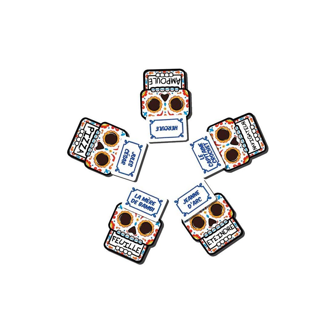 Contenu : -8 ardoises Crâne, -8 feutres avec effaceur, -125 cartes Personnage, -15 cartes Contrainte, 1 Livret de règles