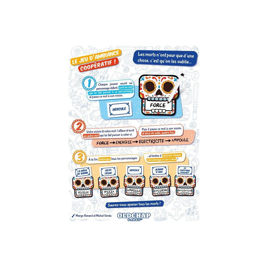 Les morts sont de retour dans Fiesta de los Muertos ! Choisissez un mot pour décrire votre personnage défunt, mais attention ce mot va passer de main en main, et se modifier peu à peu… Parviendrez-vous à retrouver votre personnage et celui des autres joueurs ?