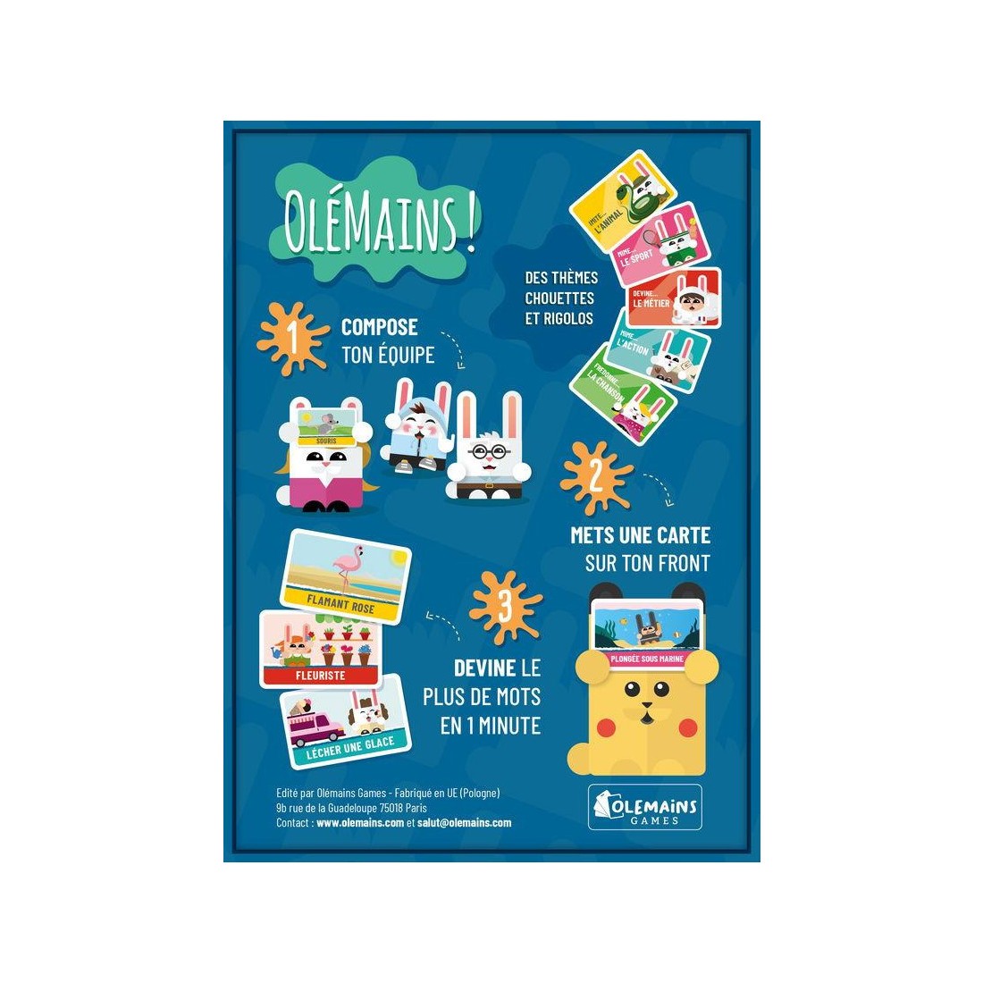 Dans sa version Familiale, Olémains va s'attaquer aux thèmes favoris des enfants... mais qui vont aussi beaucoup faire rire les grands ! Qui saura imiter le mieux une chèvre ou une girafe ? Qui saura chanter 3 p'tits chats ou la reine des neiges ? Qui saura mimer découper une pizza ou faire de la trottinette ?
