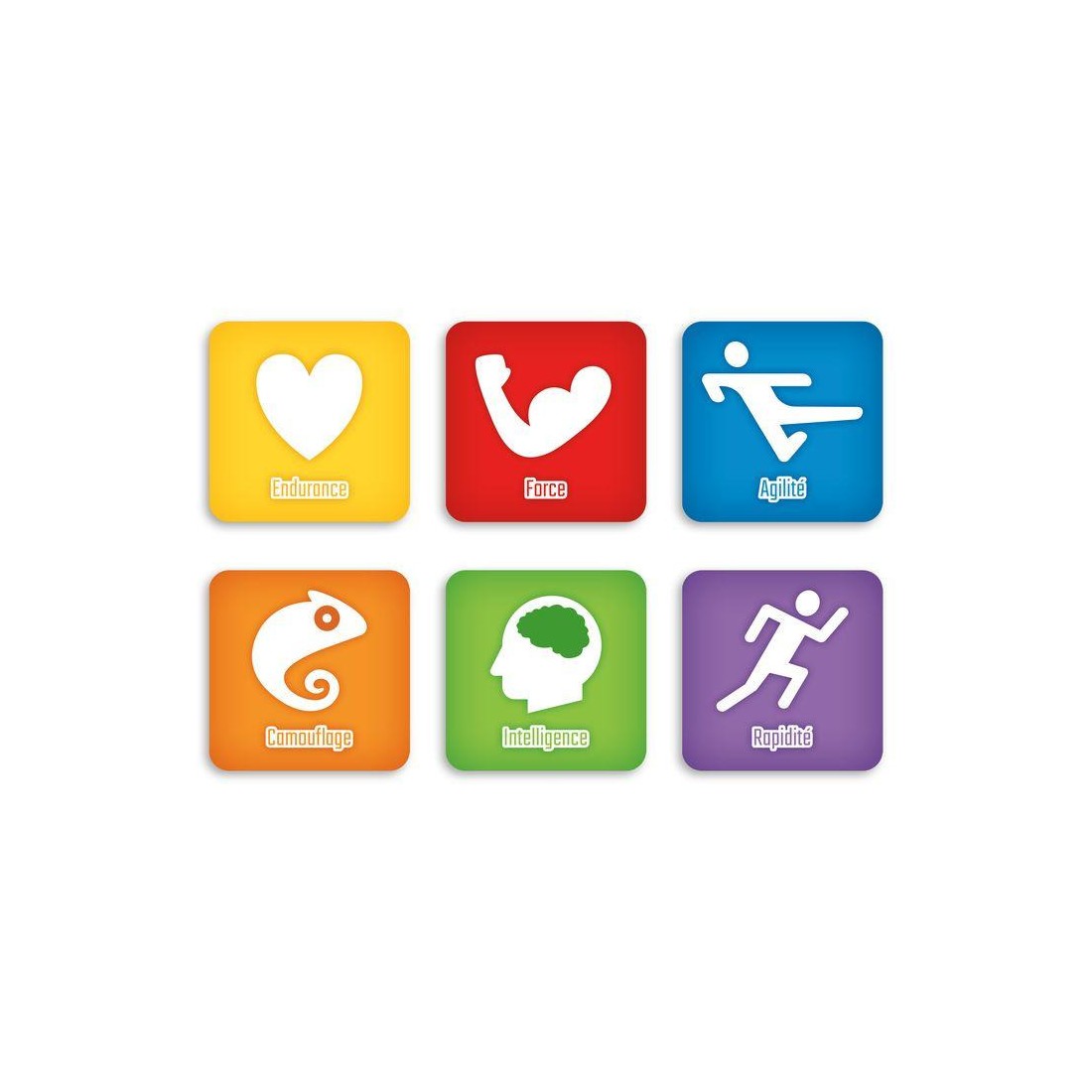 Contenu : • 28 cartes-couleurs, • 27 cartes-habiletés, • 6 cartes-personnages, • 1 guide d'accompagnement, • les règles du jeu