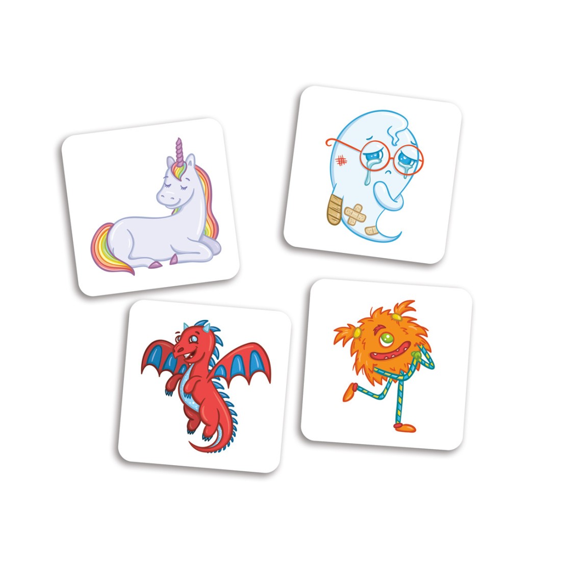 Les monstres, les licornes, les fantômes et les dragons se sont cachés! Concentre-toi, observe bien et essaie de te rappeler où sont les jumeaux! Tu pourras ensuite les aider à regagner leur monde.
