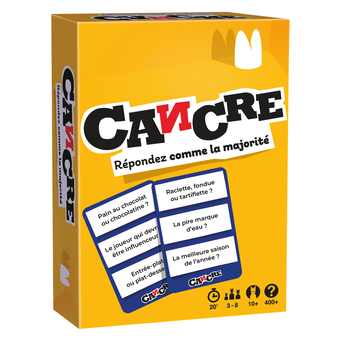 Grâce à ses 400 questions variées, Cancre est le jeu parfait pour toutes les personnes qui aiment les débats fédérateurs autour des dilemmes du quotidien. Chaque partie est différente, car le plaisir vient de deviner comment pensent les joueurs du jour. Facile à sortir, rapide à expliquer, il s’adapte à tous les groupes, notamment des joueurs non aguerris.