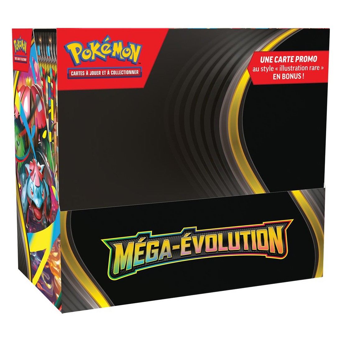 Choisissez vos partenaires Pokémon et préparez-vous pour les combats les plus impressionnants que vous ayez jamais vus ! Contenu :Chaque booster de l'extension Méga-Évolution du Jcc Pokémon contient 10 cartes, 1 énergie de base ou 1 carte à code pour le Jcc Pokémon Live.
