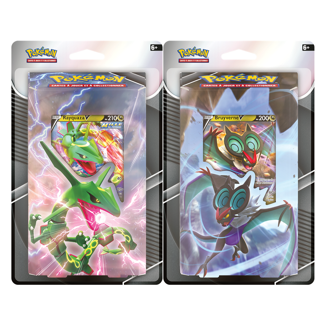 Apprêtez-vous à vivre un affrontement épique entre l'un des plus grands et plus puissants Pokémon légendaires et son rival au sang chaud connu pour poursuivre ses proies sans relâche. Ces decks prêts à l'emploi opposent Rayquaza-V à Bruyverne-V et comprennent tout ce dont les joueurs ont besoin pour un combat épique. Choisissez entre le Pokémon Cieux ou le Pokémon Ondes pour mener votre équipe dans un combat féroce contre l'adversaire. Ensuite, échangez les decks pour une nouvelle perspective. Arriverez-vous à gagner avec les deux puissants Pokémon-V ? Contenu :- 1 deck de 60 cartes prête à jouer, dont le Pokémon Rayquaza-V