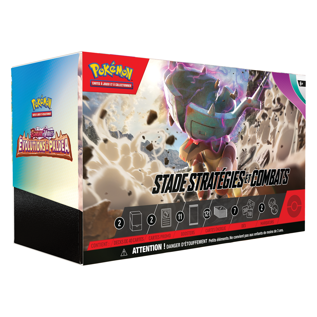 - 2 Boitiers Stratégies et Combats contenant chacun un deck prêt à jouer de 40 cartes