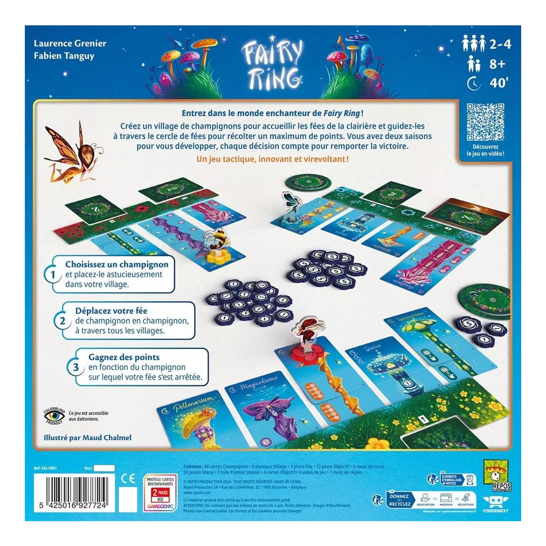 Dans Fairy Ring, vous avez pour mission de créer un Village de champignons pour abriter les fées de la clairière. Guidez votre fée avec soin à travers le cercle féerique, de Village en Village, pour récolter le plus de Mana possible. Vous ne disposez que de deux saisons pour développer votre Village avant l'arrivée de l'hiver : chaque décision que vous prenez est cruciale pour remporter la partie.